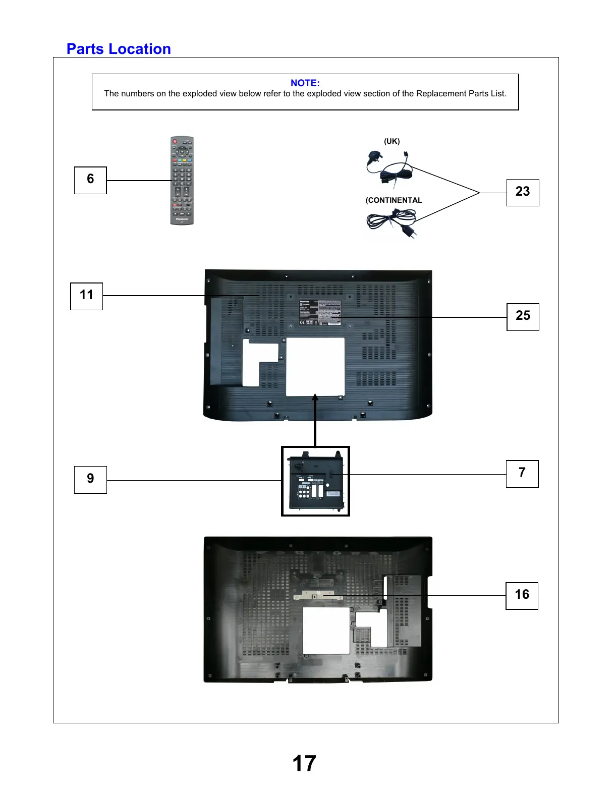 Panasonic TX-32LE8P - Parts Location; Exploded View Overview; Accessory Identification
