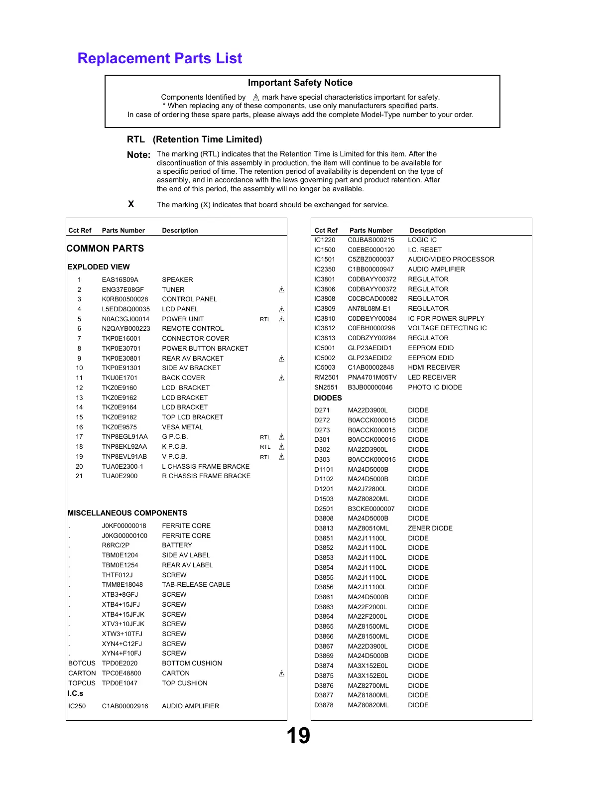 DescriptionCct Ref Parts Number DescriptionCct Ref Parts Number