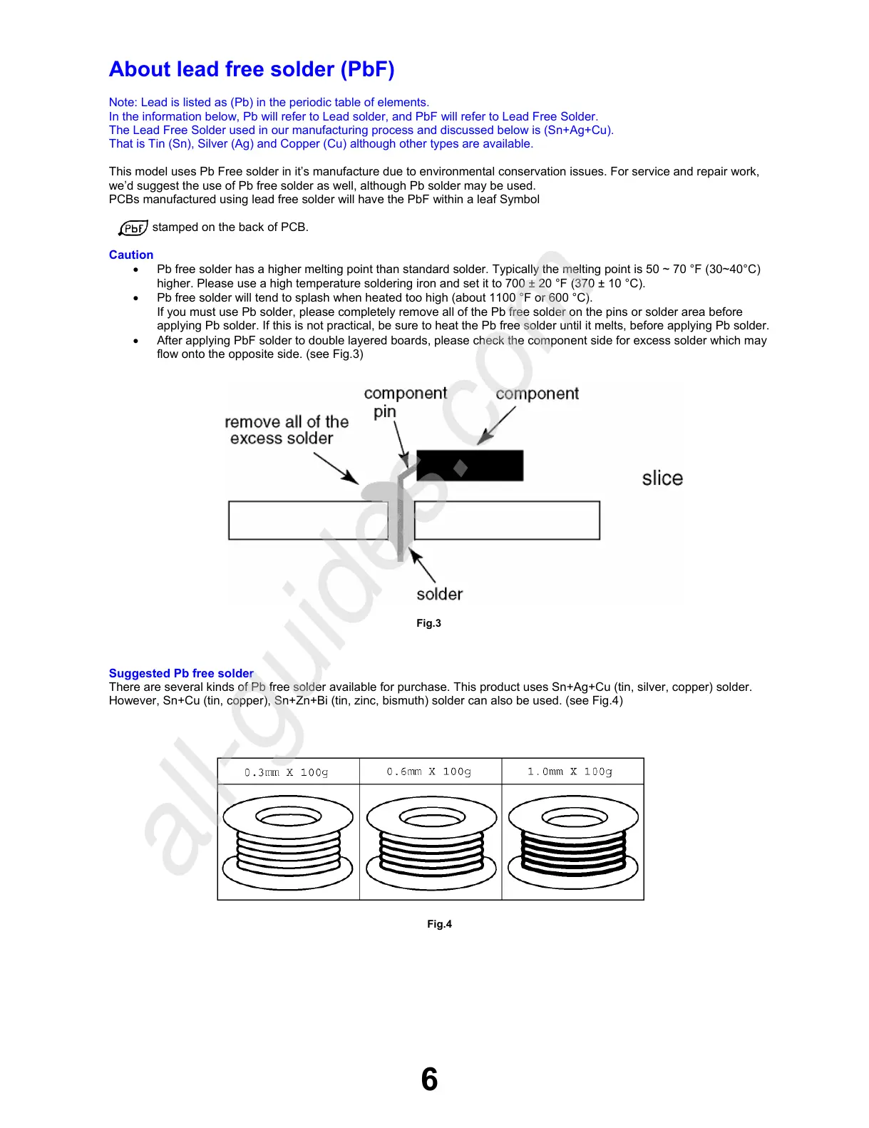 In the information below, Pb will refer to Lead solder, and PbF will refer to Lead Free Solder.