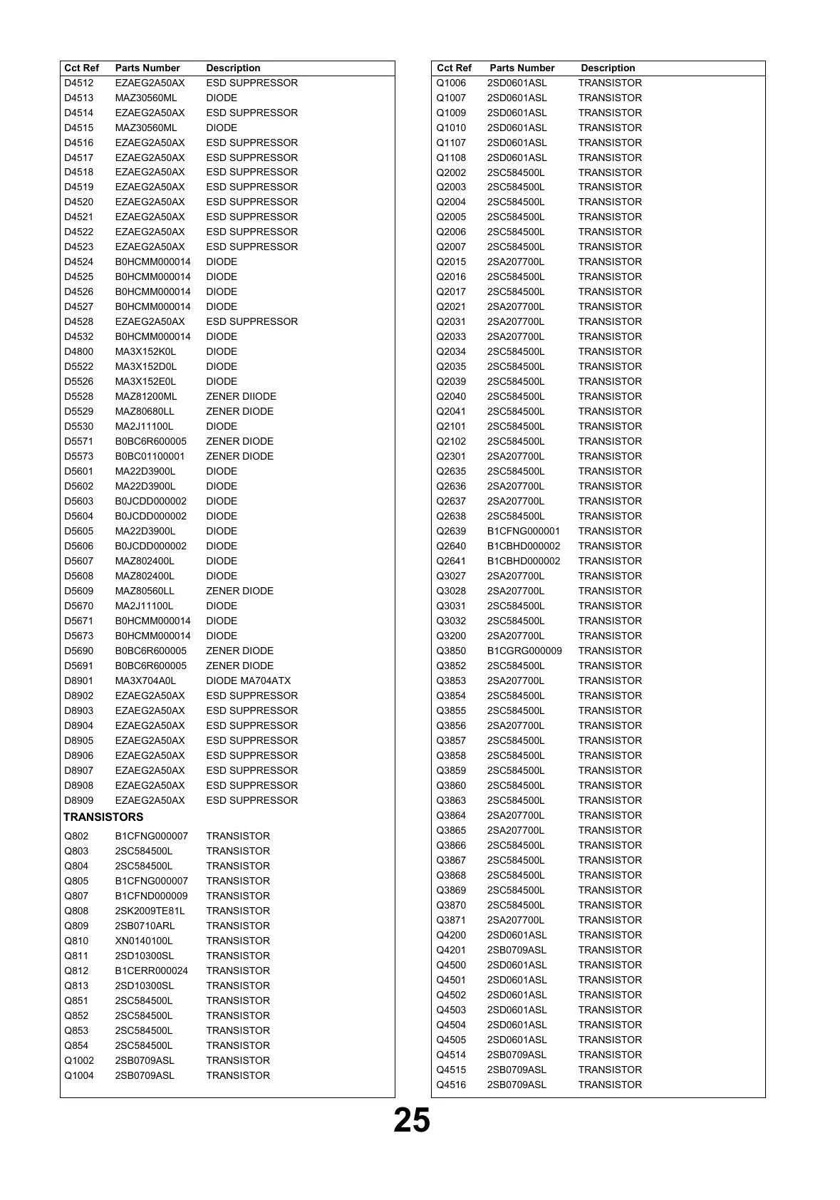 DescriptionCct Ref Parts Number DescriptionCct Ref Parts Number
