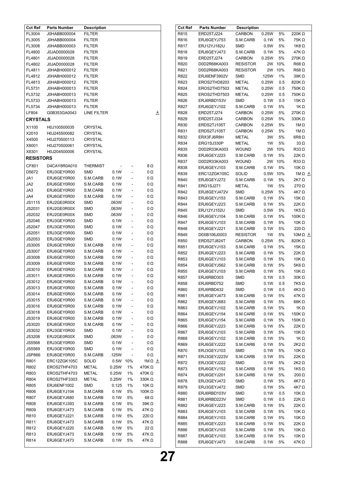 DescriptionCct Ref Parts Number DescriptionCct Ref Parts Number