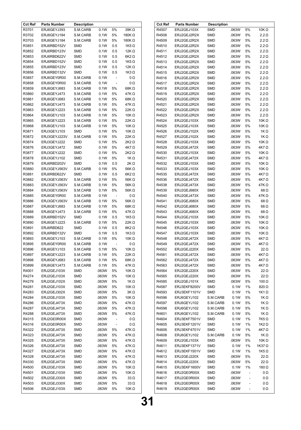 DescriptionCct Ref Parts Number DescriptionCct Ref Parts Number
