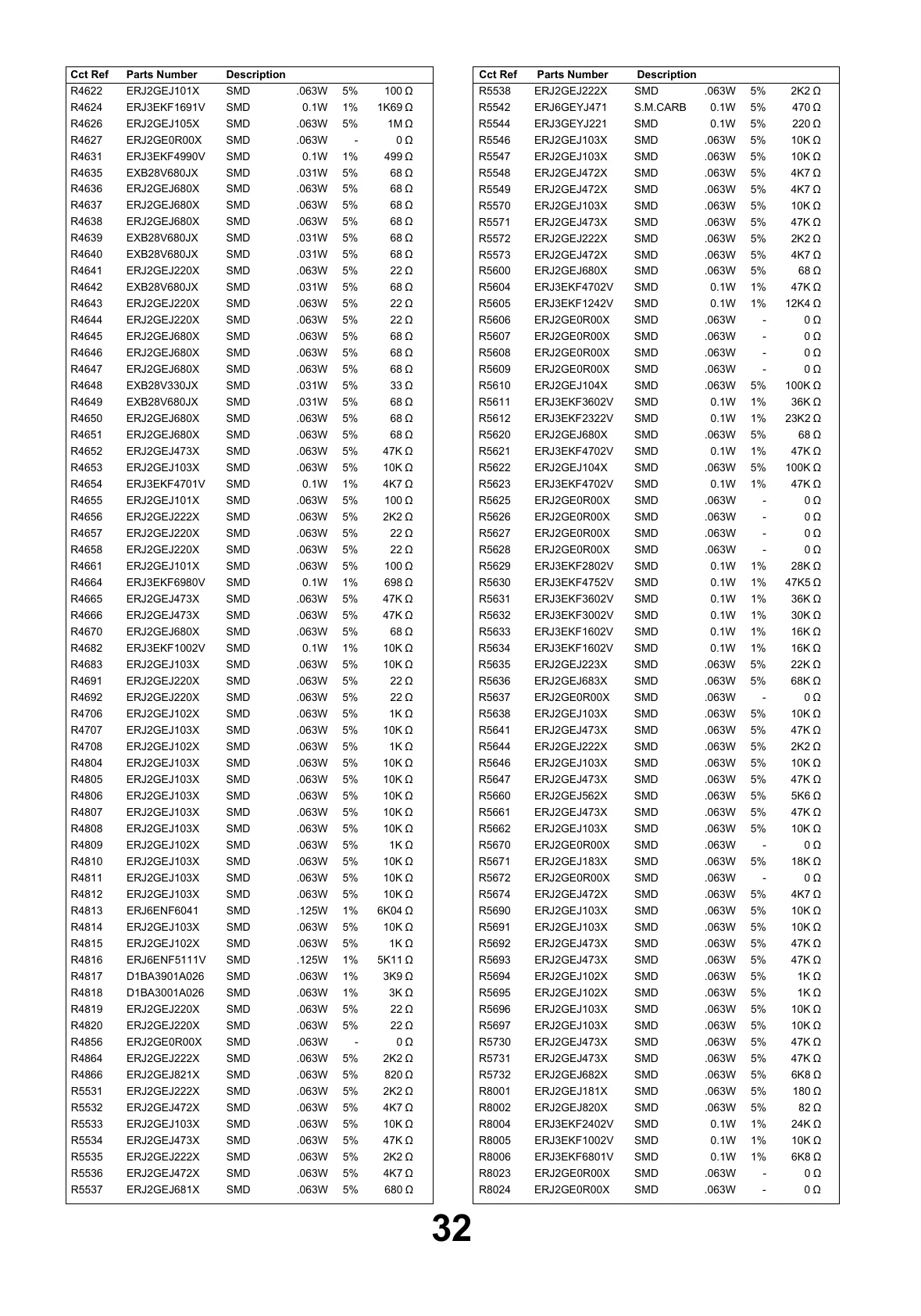 DescriptionCct Ref Parts Number DescriptionCct Ref Parts Number