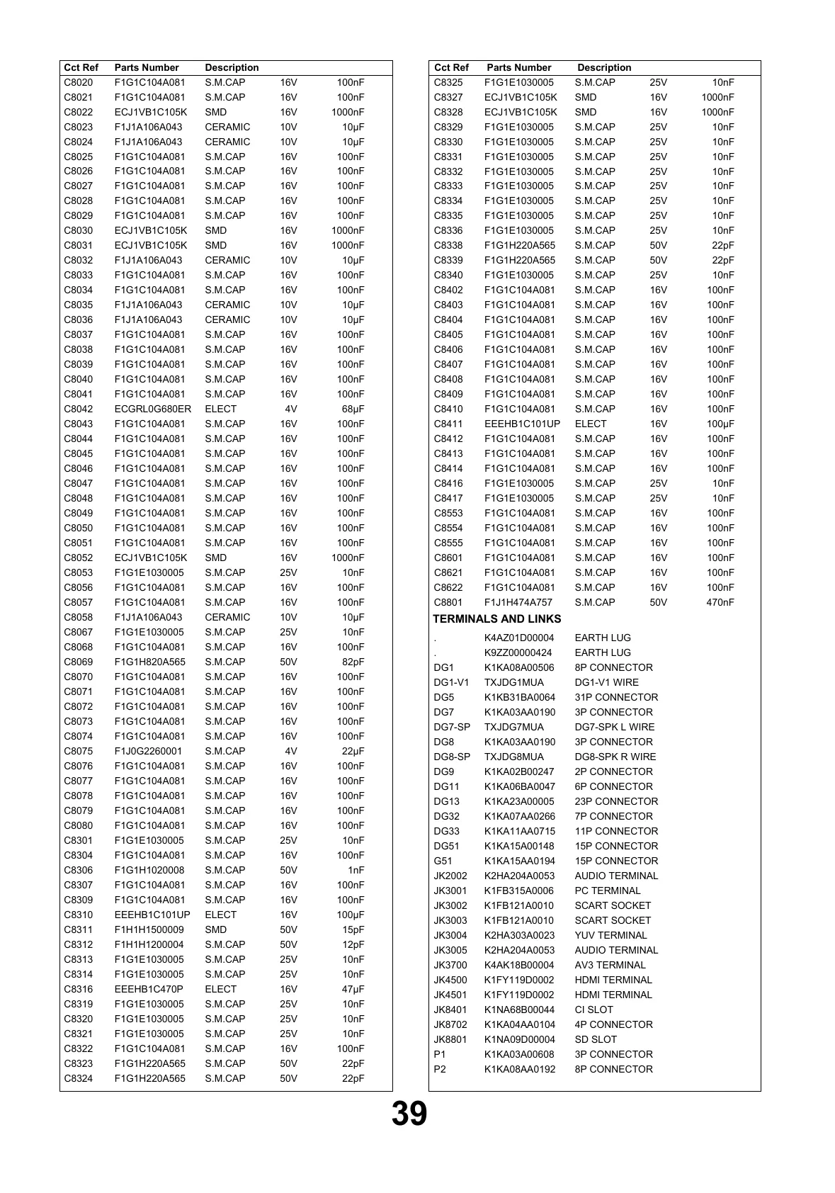 DescriptionCct Ref Parts Number DescriptionCct Ref Parts Number