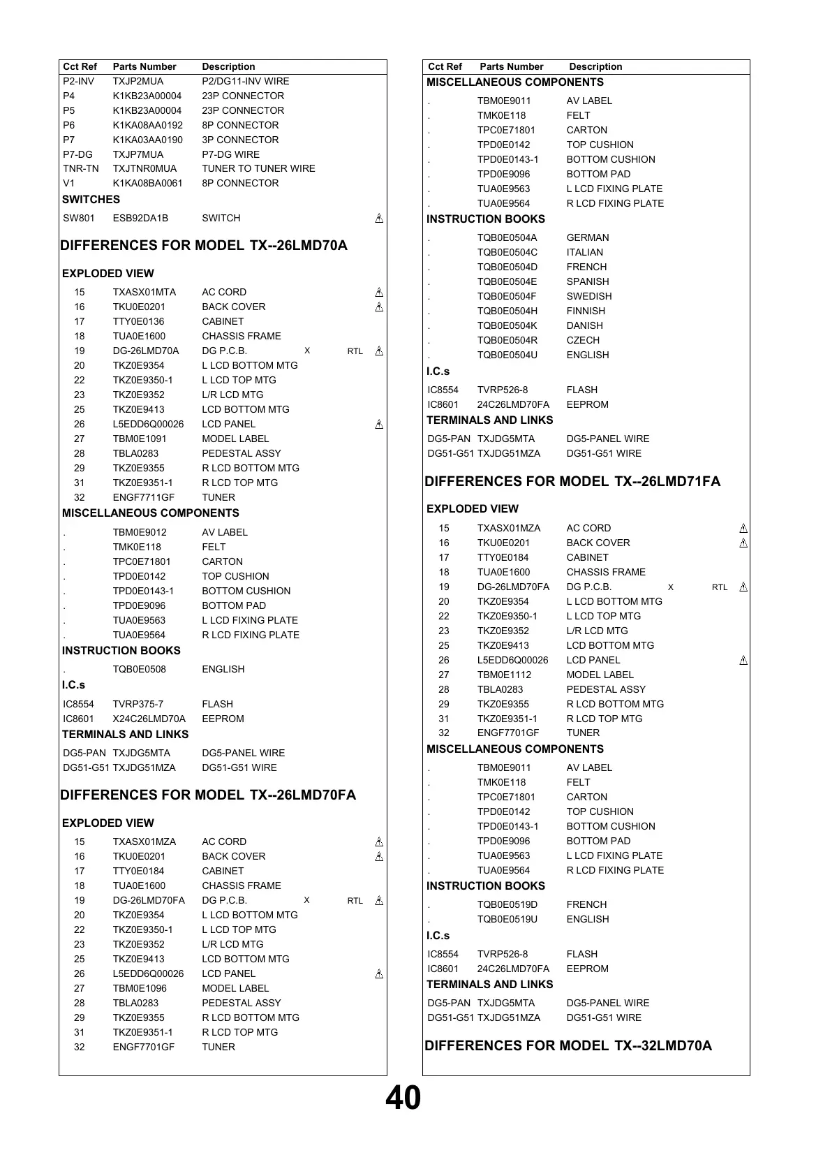 DIFFERENCES FOR MODEL TX--26LMD71FA