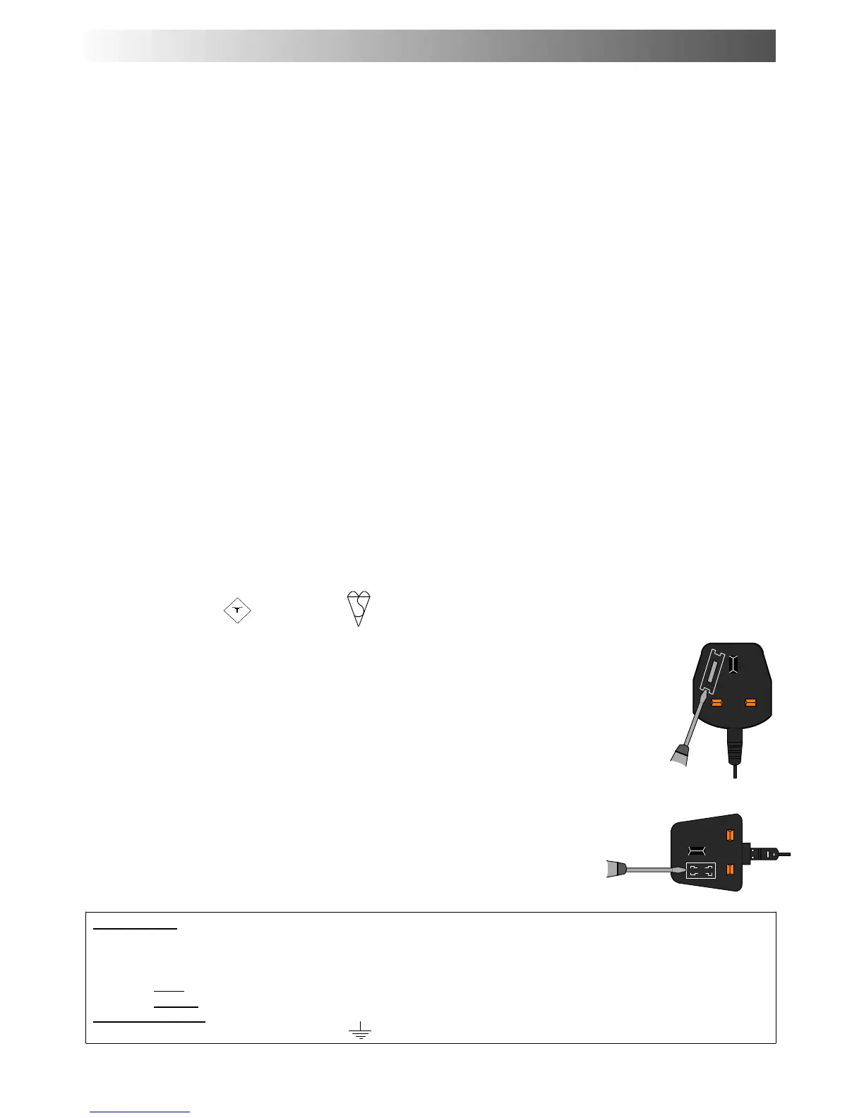 : Under no circumstances should either of these wires be connected to the Earth terminal of the three pin plug,