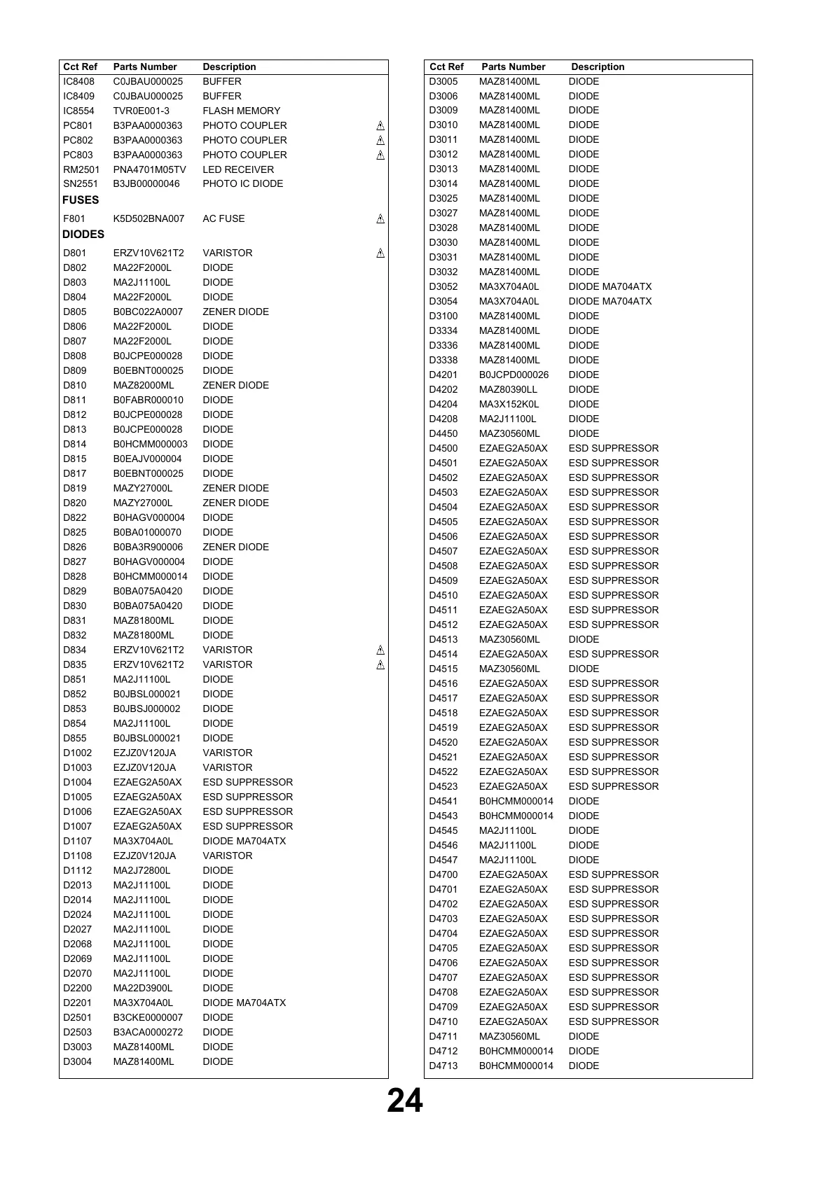 DescriptionCct Ref Parts Number DescriptionCct Ref Parts Number