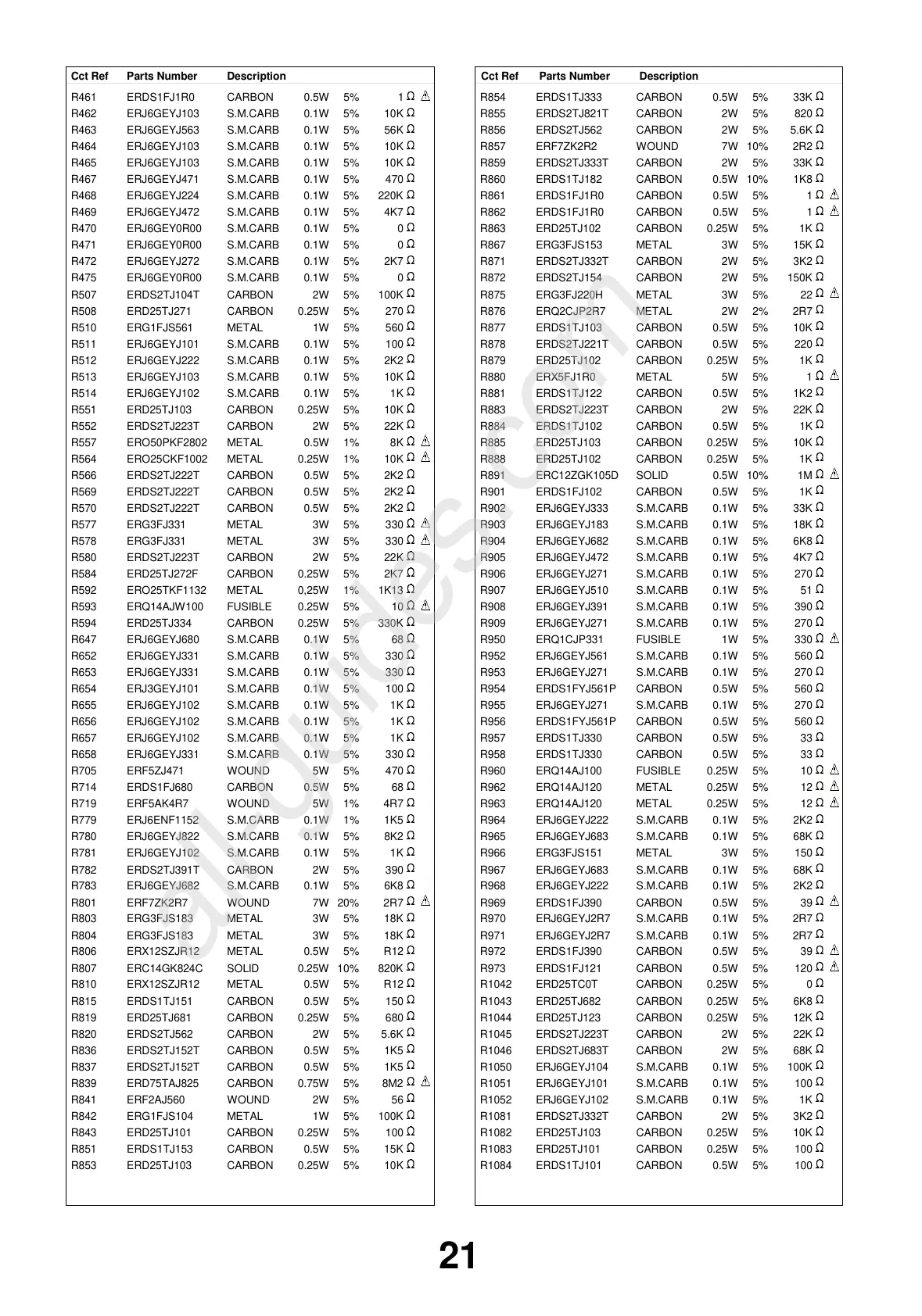 DescriptionCct Ref Parts Number DescriptionCct Ref Parts Number