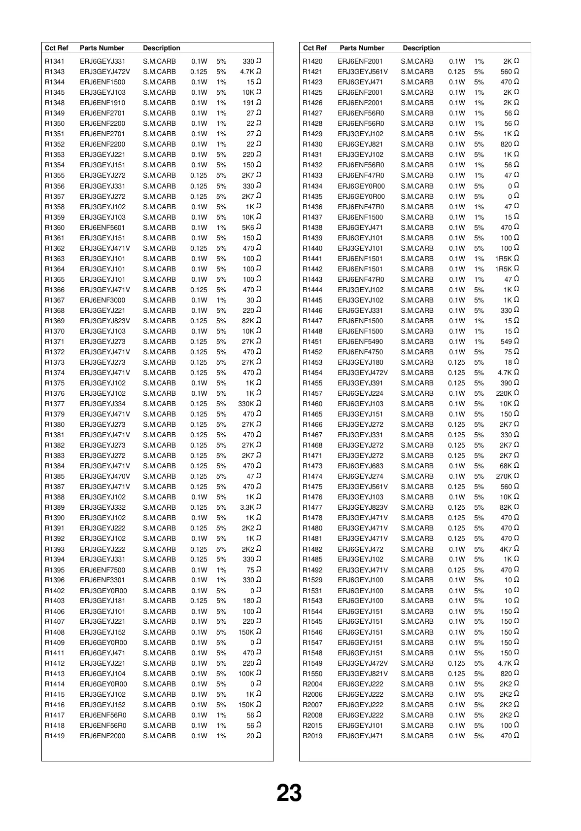 DescriptionCct Ref Parts Number DescriptionCct Ref Parts Number