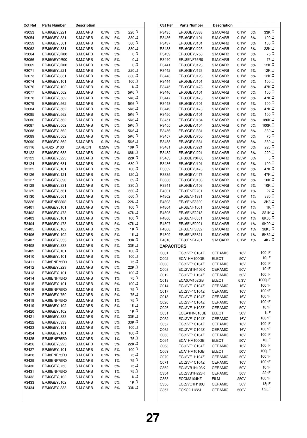 DescriptionCct Ref Parts Number DescriptionCct Ref Parts Number
