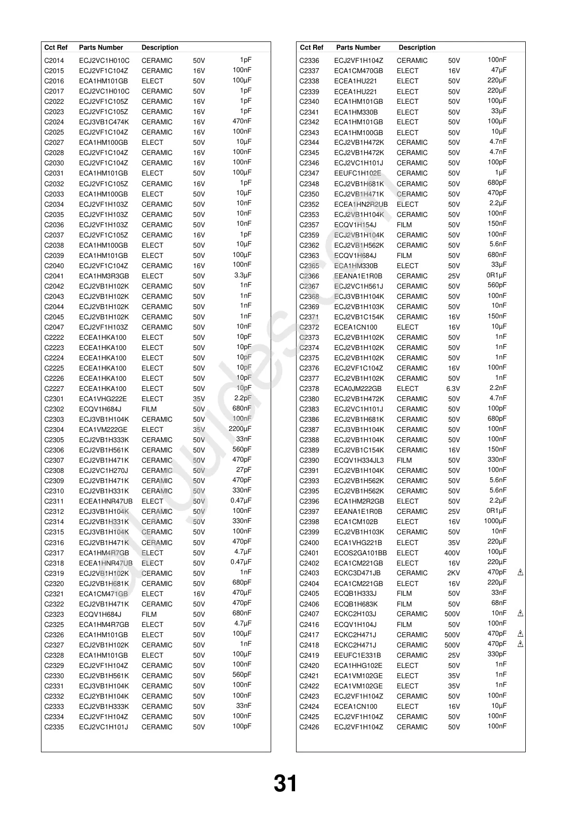 DescriptionCct Ref Parts Number DescriptionCct Ref Parts Number