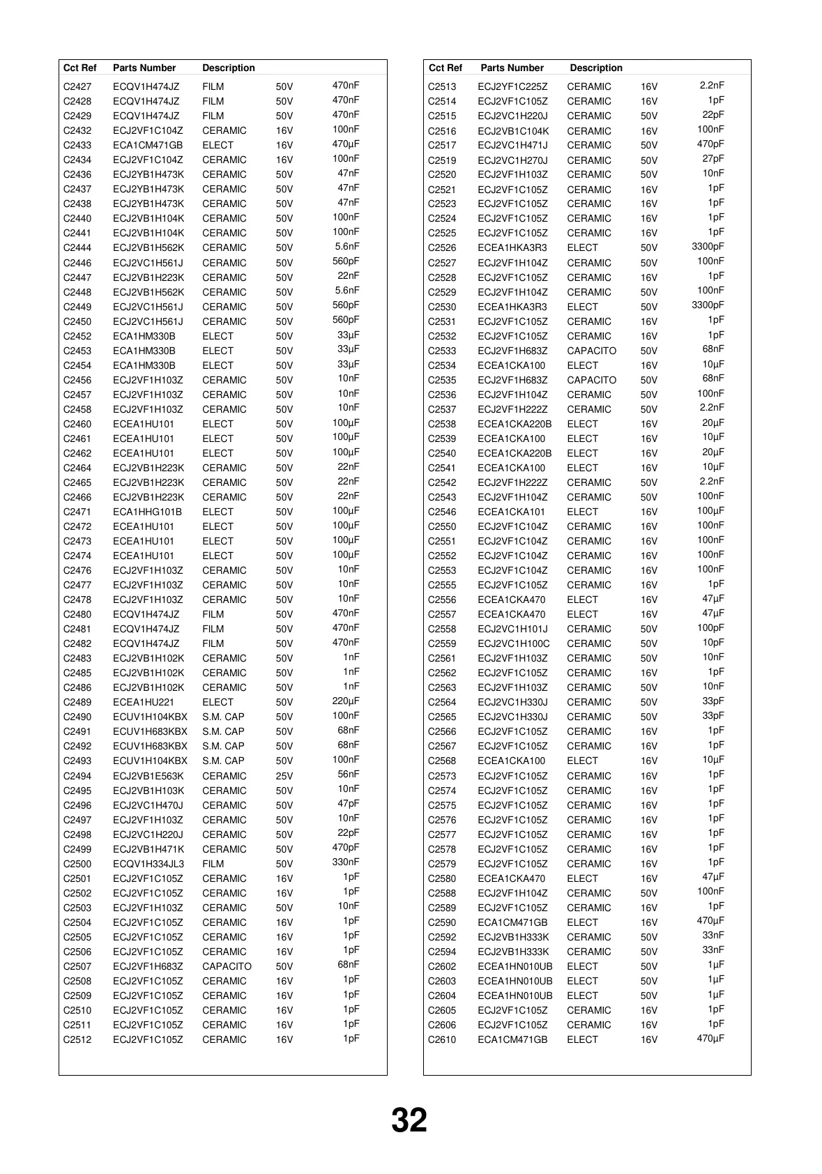DescriptionCct Ref Parts Number DescriptionCct Ref Parts Number
