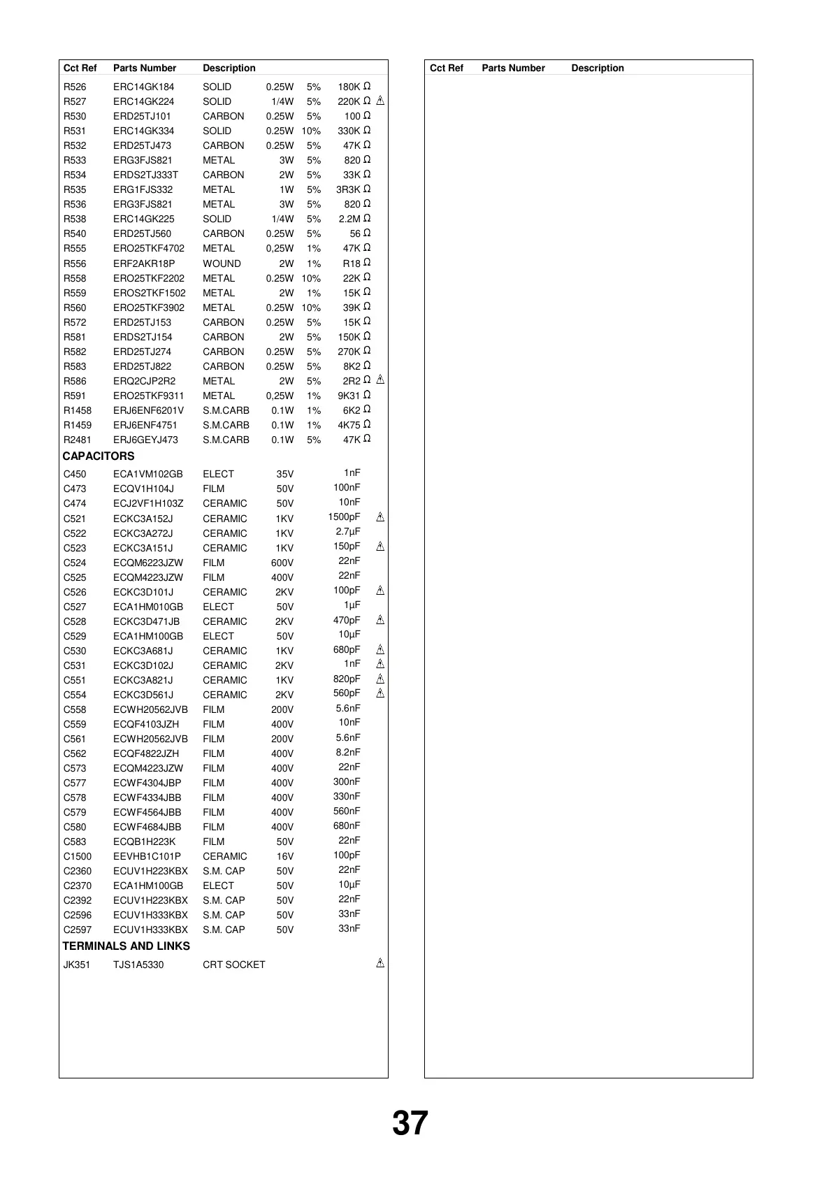 DescriptionCct Ref Parts Number DescriptionCct Ref Parts Number