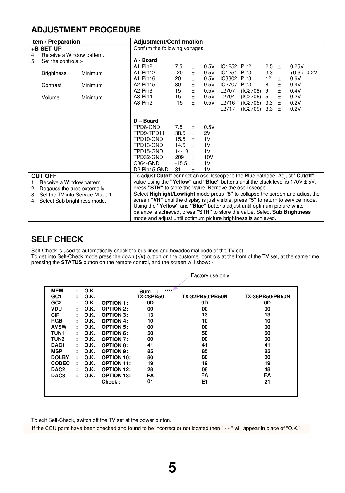Self-Check is used to automatically check the bus lines and hexadecimal code of the TV set.