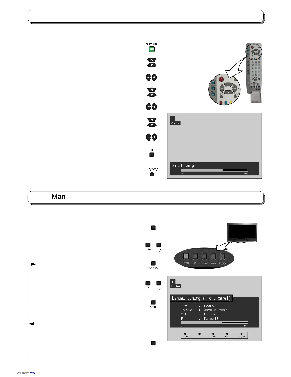 ,W LV DOVR SRVVLEOH WR XVH WKH FRQWURO SDQHO EXWWRQV RQ WKH IURQW RI \RXU 79 WR WXQH LQGLYLGXDO SURJUDPPH SRVLWLRQV