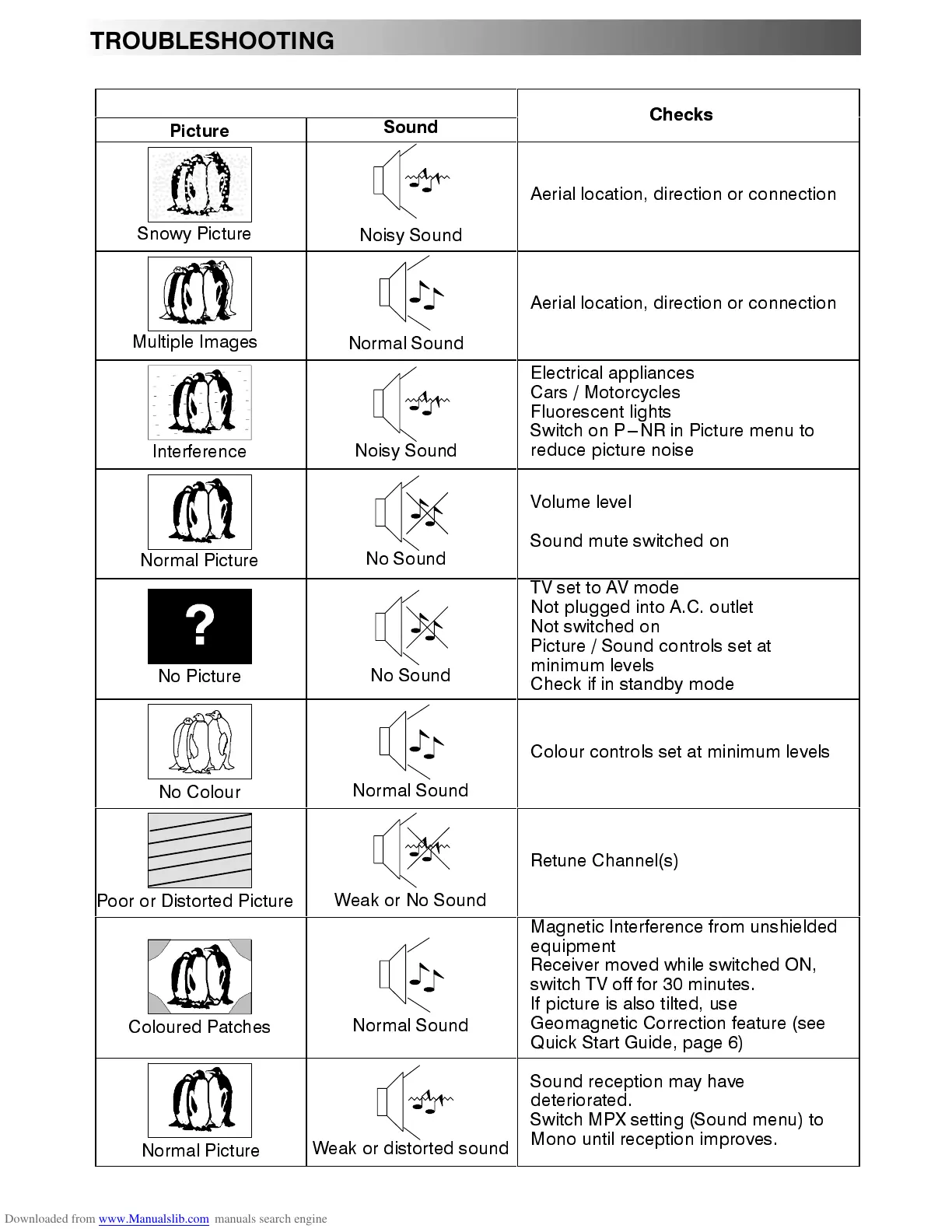 Panasonic TX-32PM11P - Troubleshooting; Picture Issues and Solutions; Sound Issues and Solutions