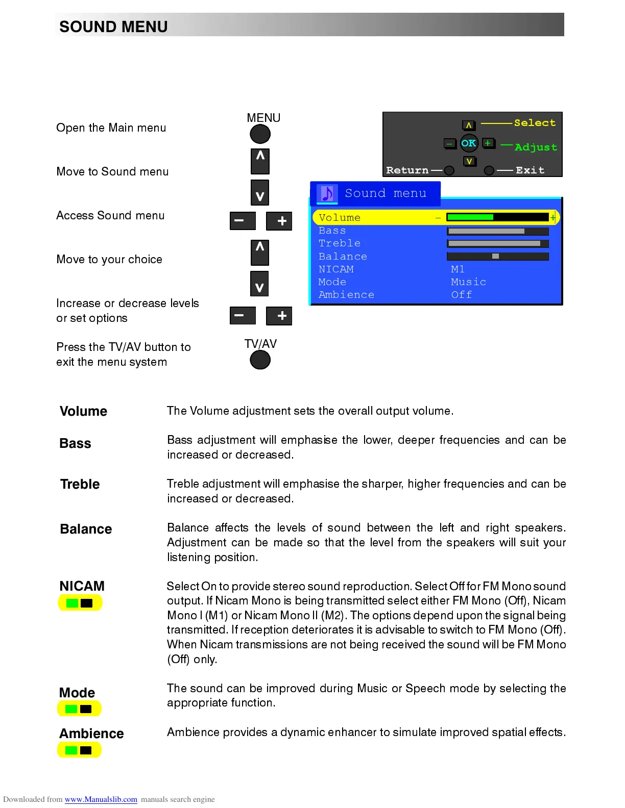 7KH 6RXQG PHQX ZLOO DOORZ \RX WR VHW \RXU SHUVRQDO SUHIHUHQFHV IRU DOO DVSHFWV