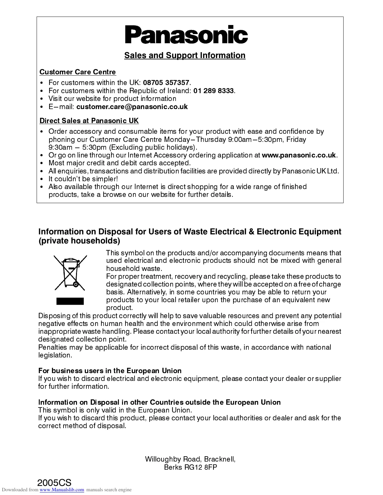 $OO HQTXLULHVWUDQVDFWLRQV DQG GLVWULEXWLRQIDFLOLWLHV DUH SURYLGHG GLUHFWO\ E\ 3DQDVRQLF8./WG