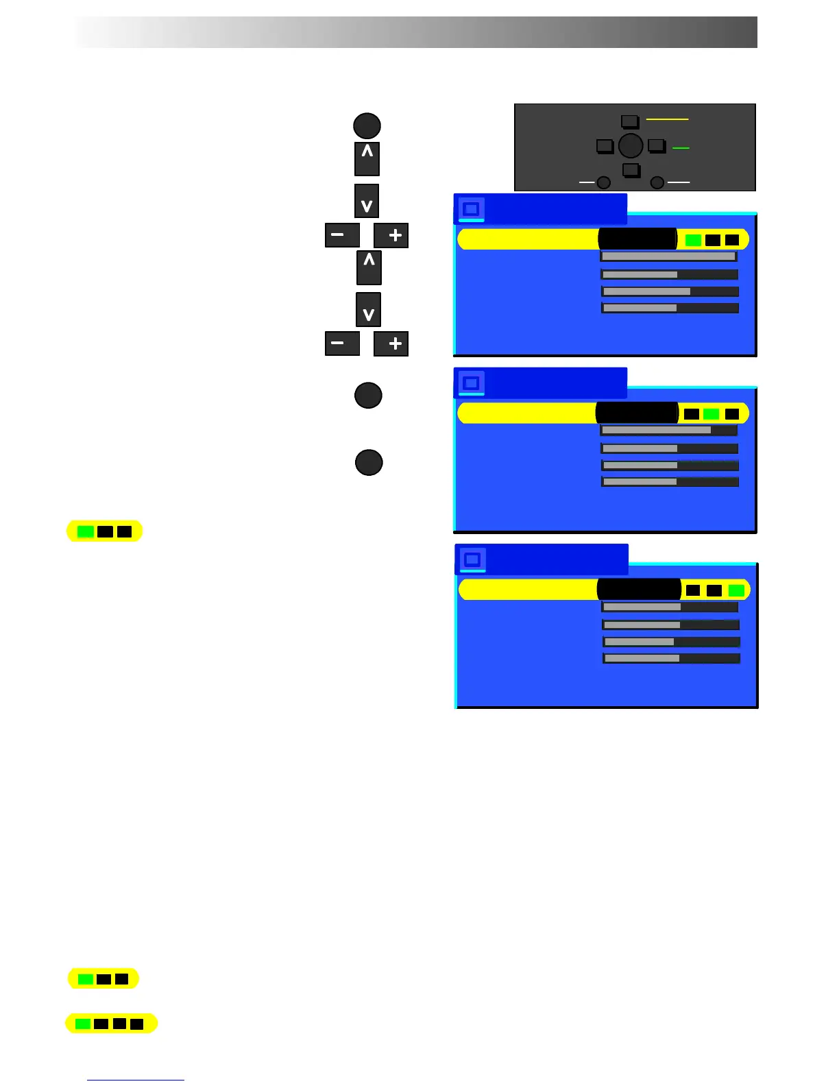 The Contrast, Brightness, Colour, Tint (in NTSC only) and Sharpness levels can