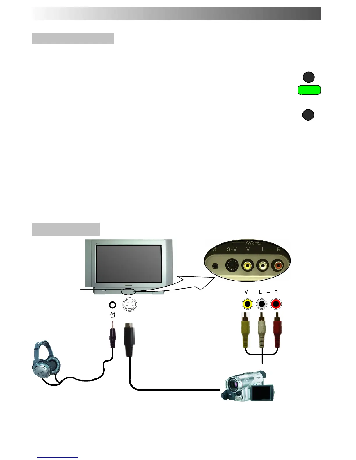 example, press the green button to select AV2 if you have connected a video recorder