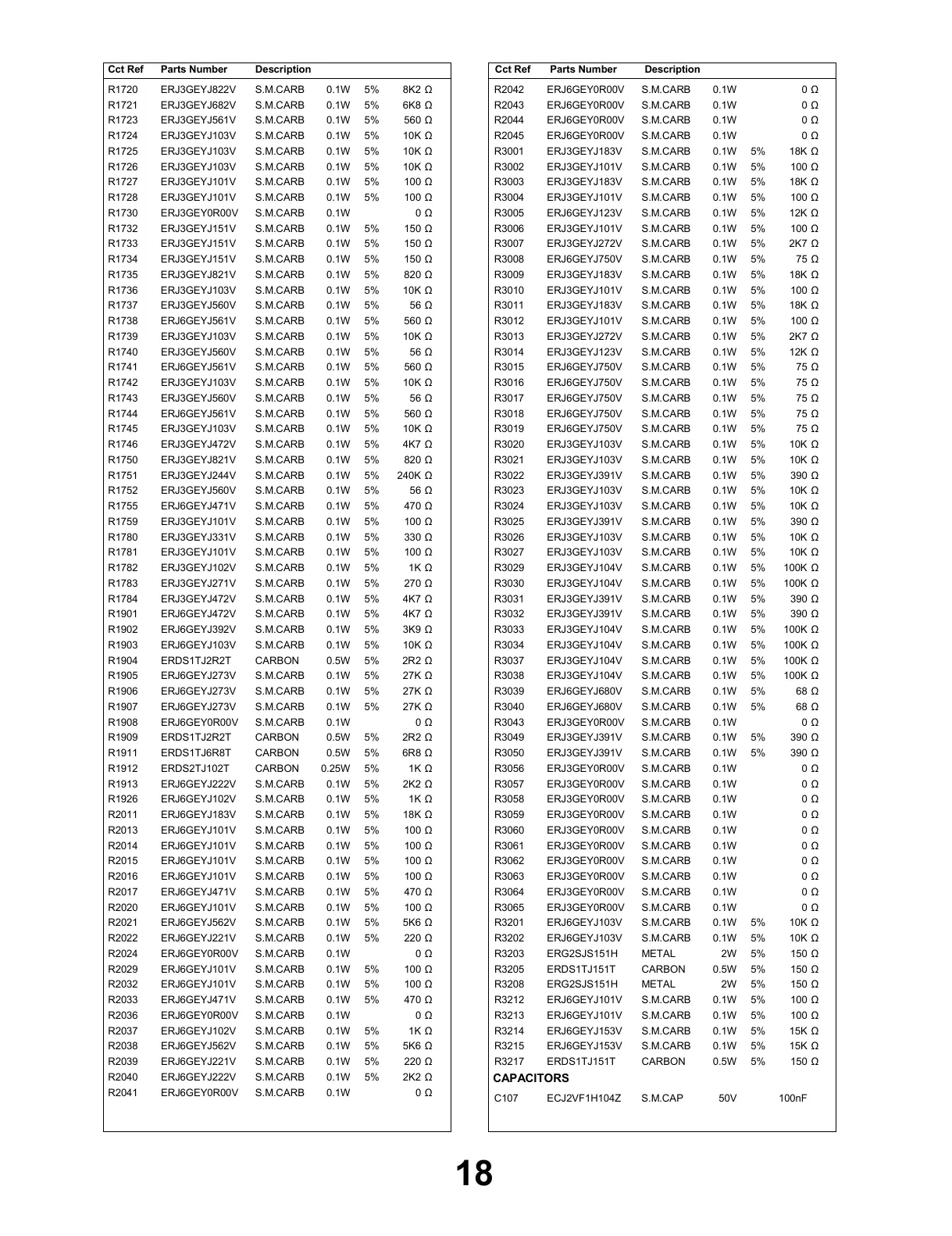S.M.CARBR3003 ERJ3GEYJ183V 0.1W 5% 18K Ω