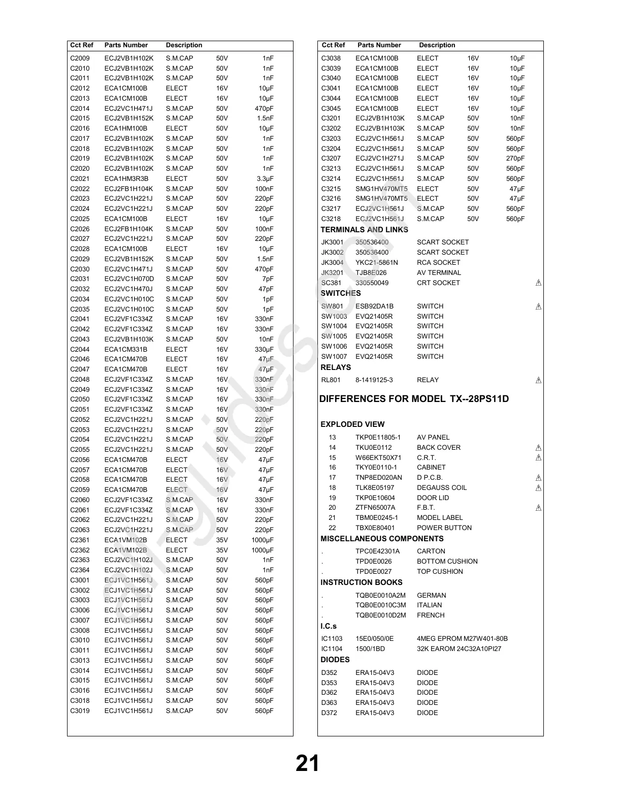 DIFFERENCES FOR MODEL TX--28PS11D