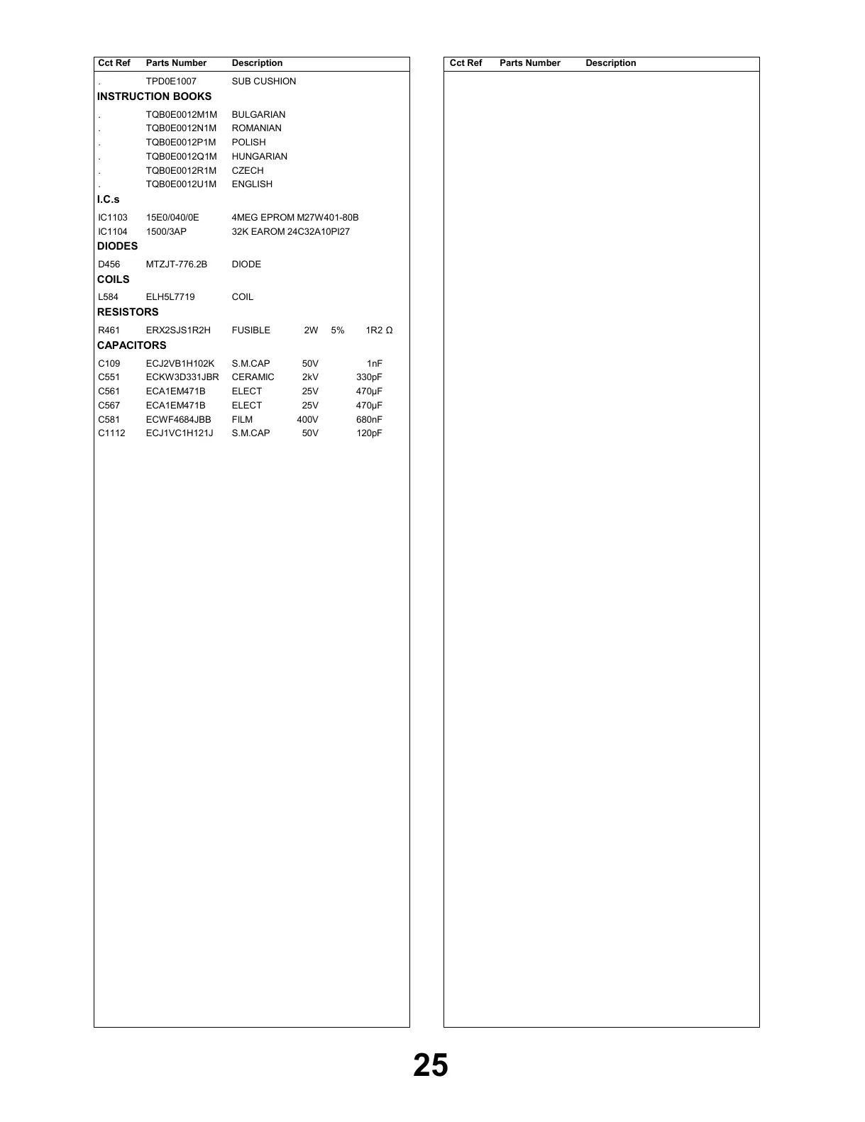 DescriptionCct Ref Parts Number DescriptionCct Ref Parts Number