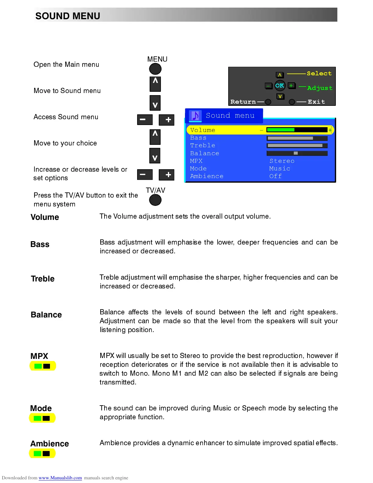 7KH 6RXQG PHQX ZLOO DOORZ \RX WR VHW \RXU SHUVRQDO SUHIHUHQFHV IRU DOO DVSHFWV