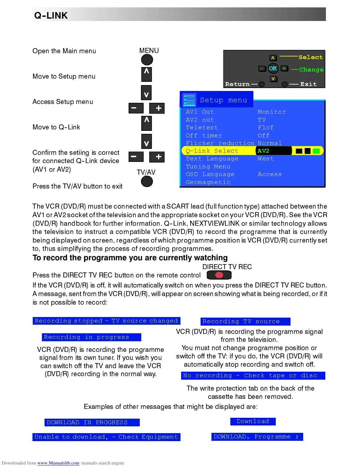 4 /LQN DOORZV WKH WHOHYLVLRQ WR FRPPXQLFDWH ZLWK \RXU 9&5 '9'5