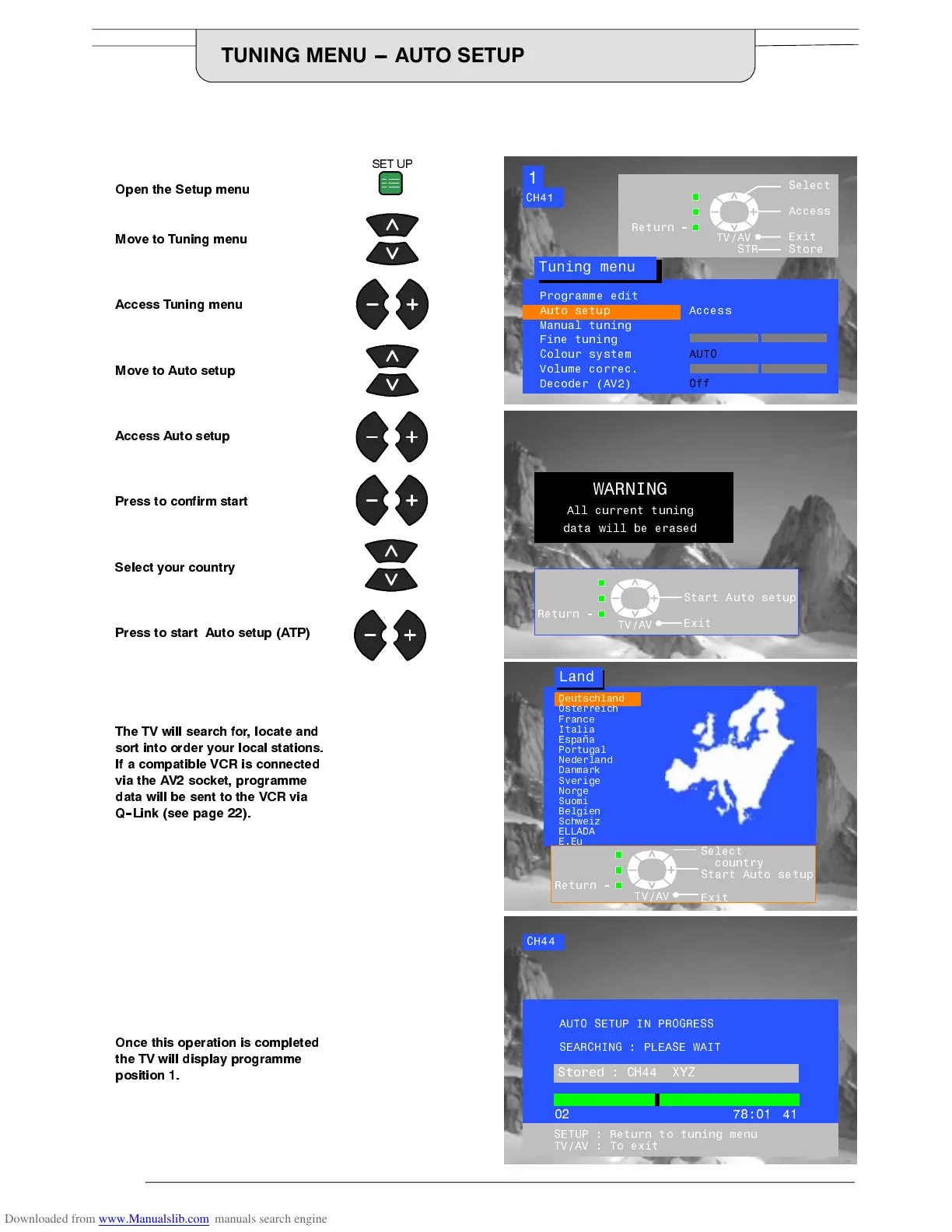 7KH $XWR VHWXS PHQX ZLOO DOORZ \RX WR DXWRPDWLFDOO\ UHWXQH WKH 79 WR \RXU ORFDO VWDWLRQV