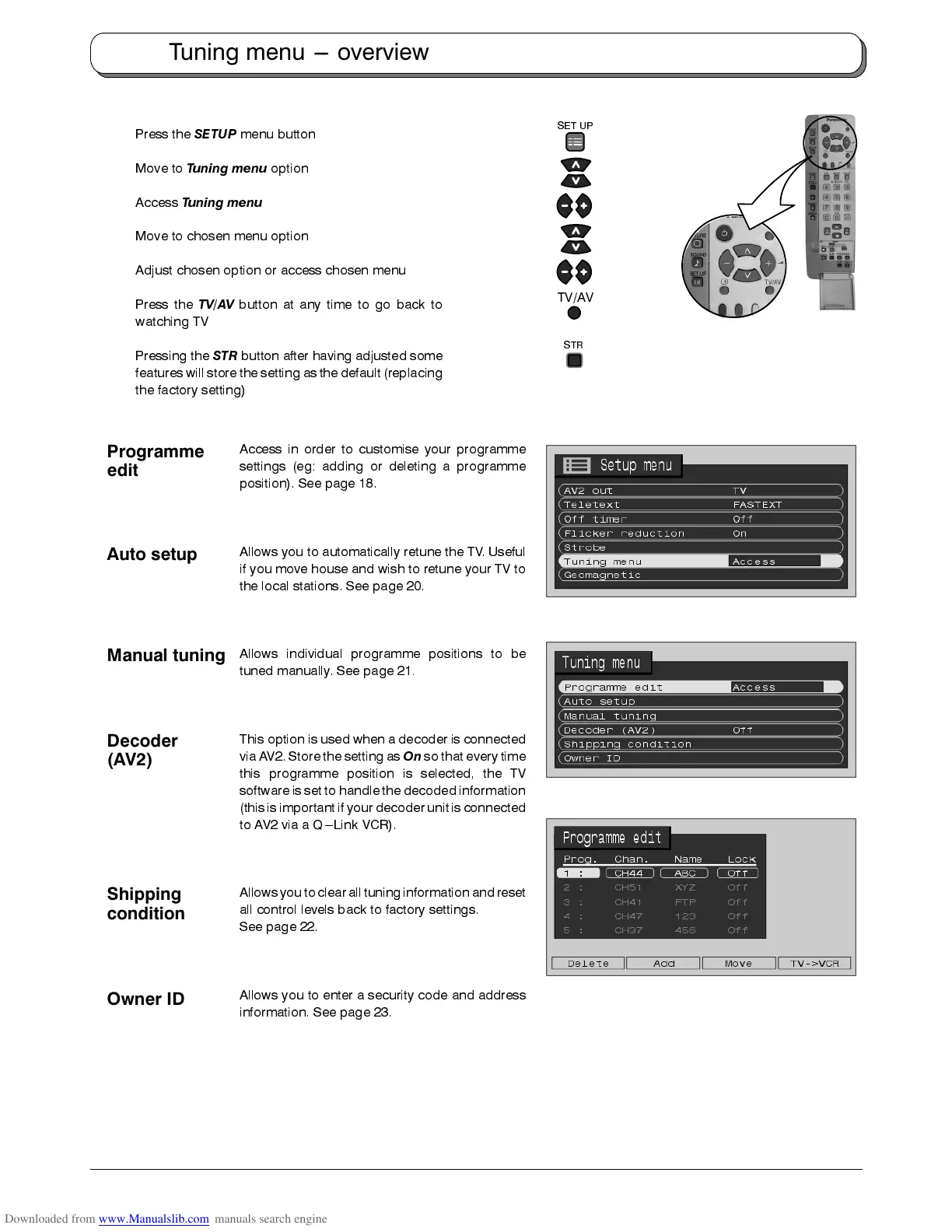 tuned manually. See page 21.