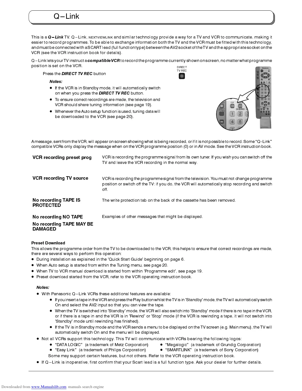 If Q---Link is inoperative, first confirm that your Scart lead is a full function type. Ask your dealer for further details.