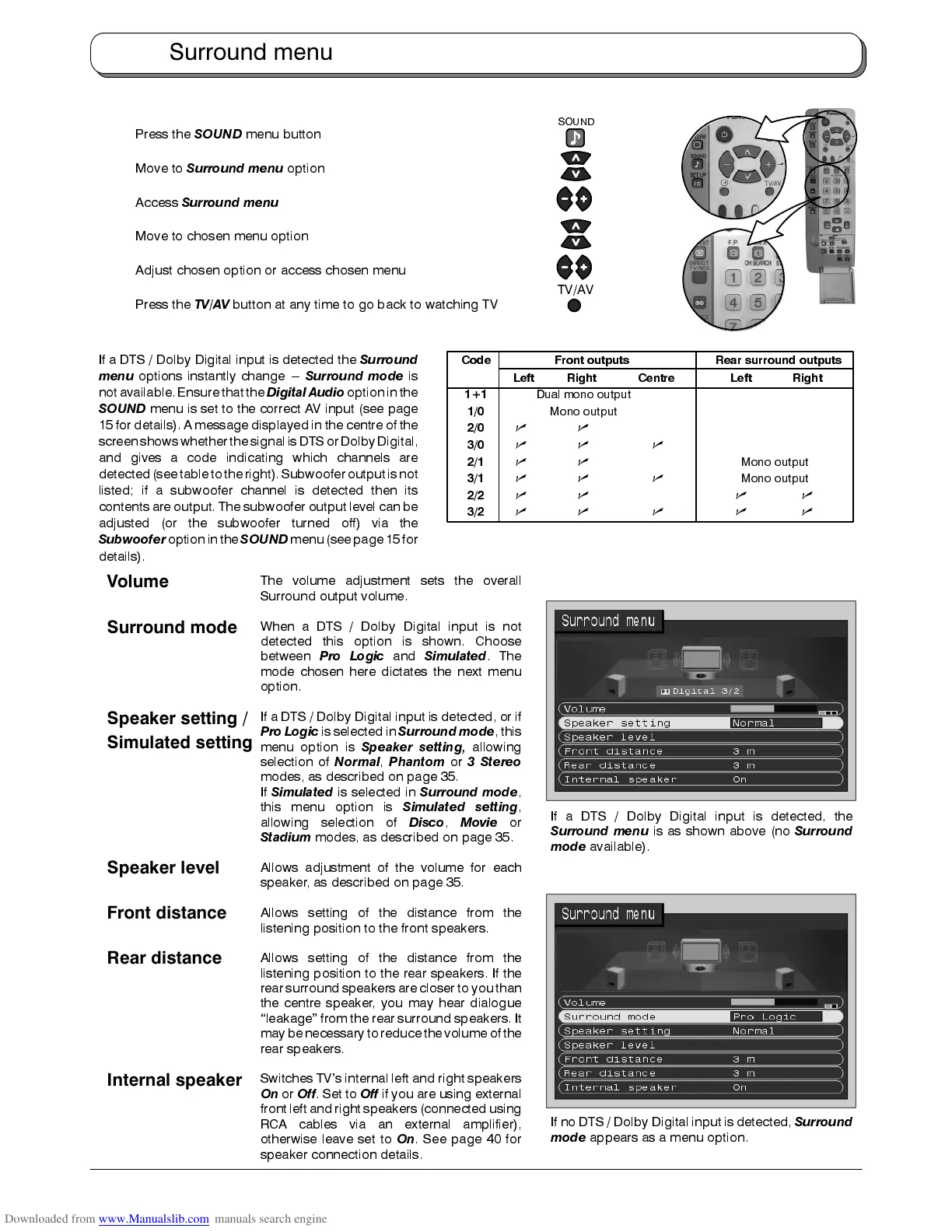 Code Front outputs Rear surround outputs