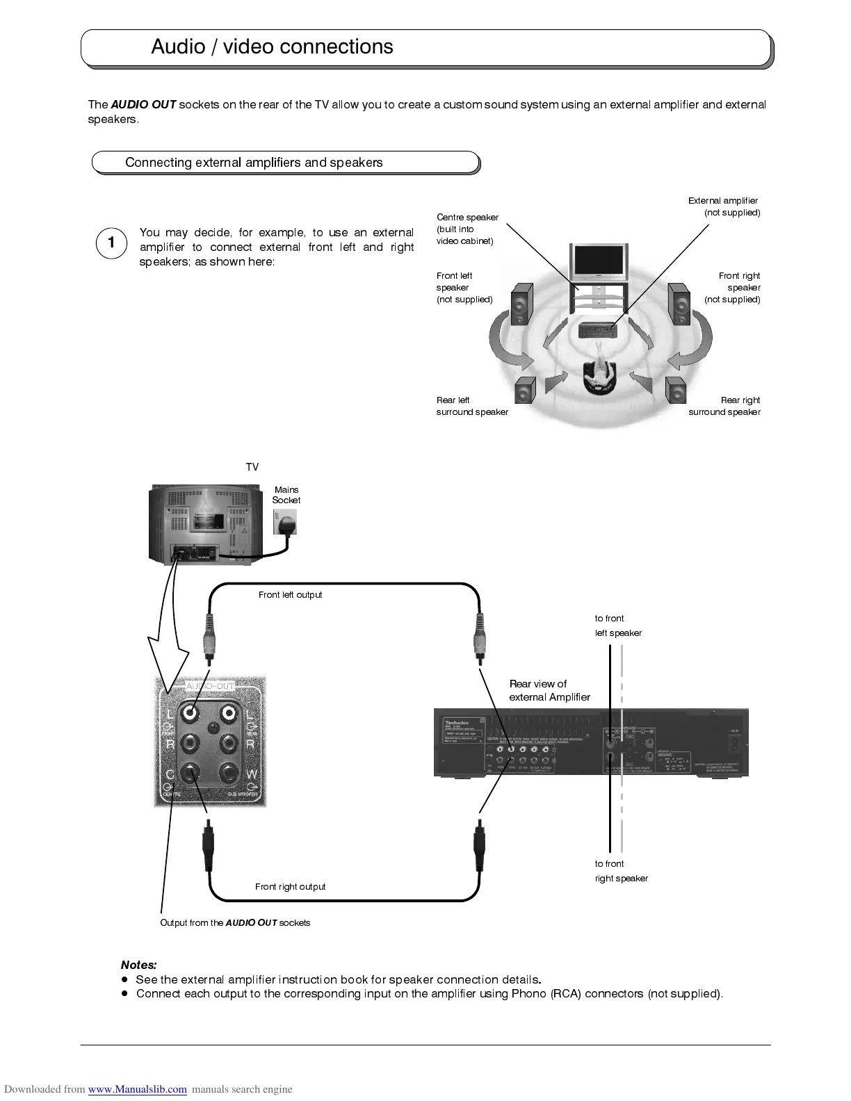 Connect each output to the corresponding input on the amplifier using Phono (RCA) connectors (not supplied).