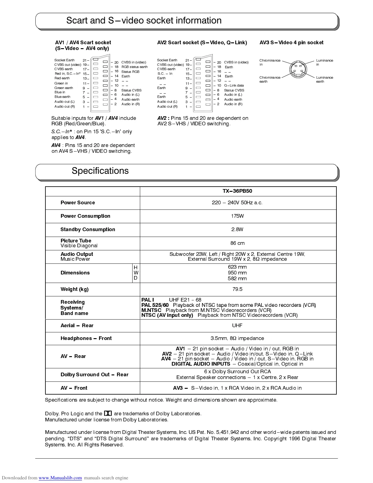 pending. “DTS” and “DTS Digital Surround” are trademarks of Digital Theater Systems, Inc. Copyright 1996 Digital Theater