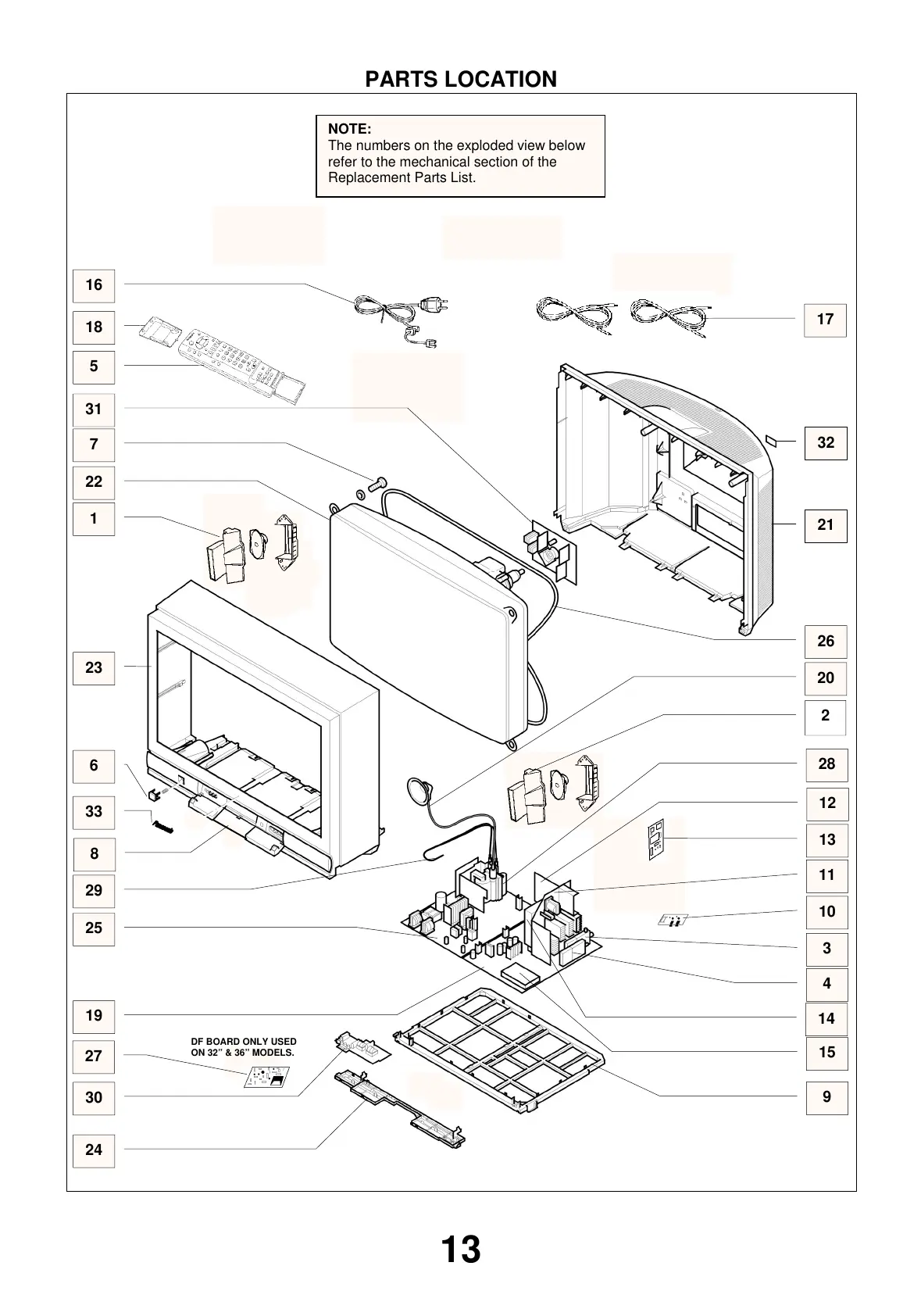 Panasonic TX-36PB50D - PARTS LOCATION; Exploded View of Components