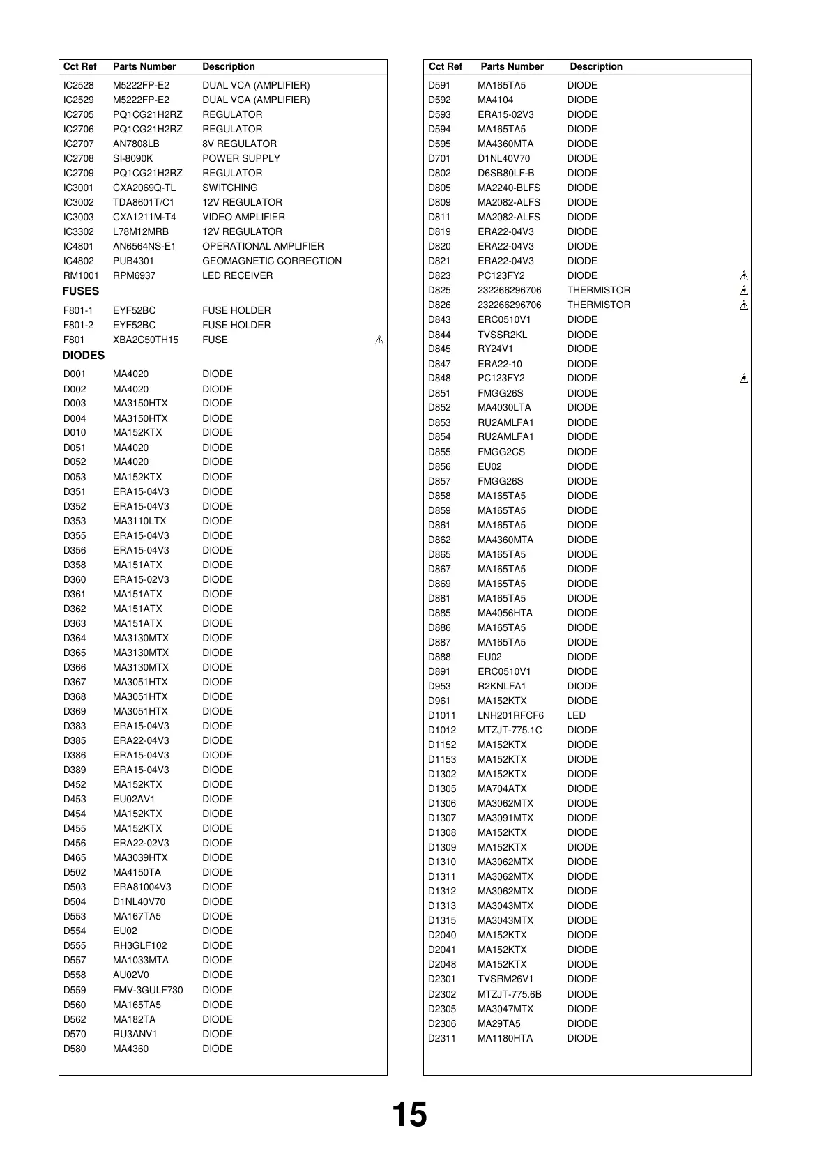 DescriptionCct Ref Parts Number DescriptionCct Ref Parts Number