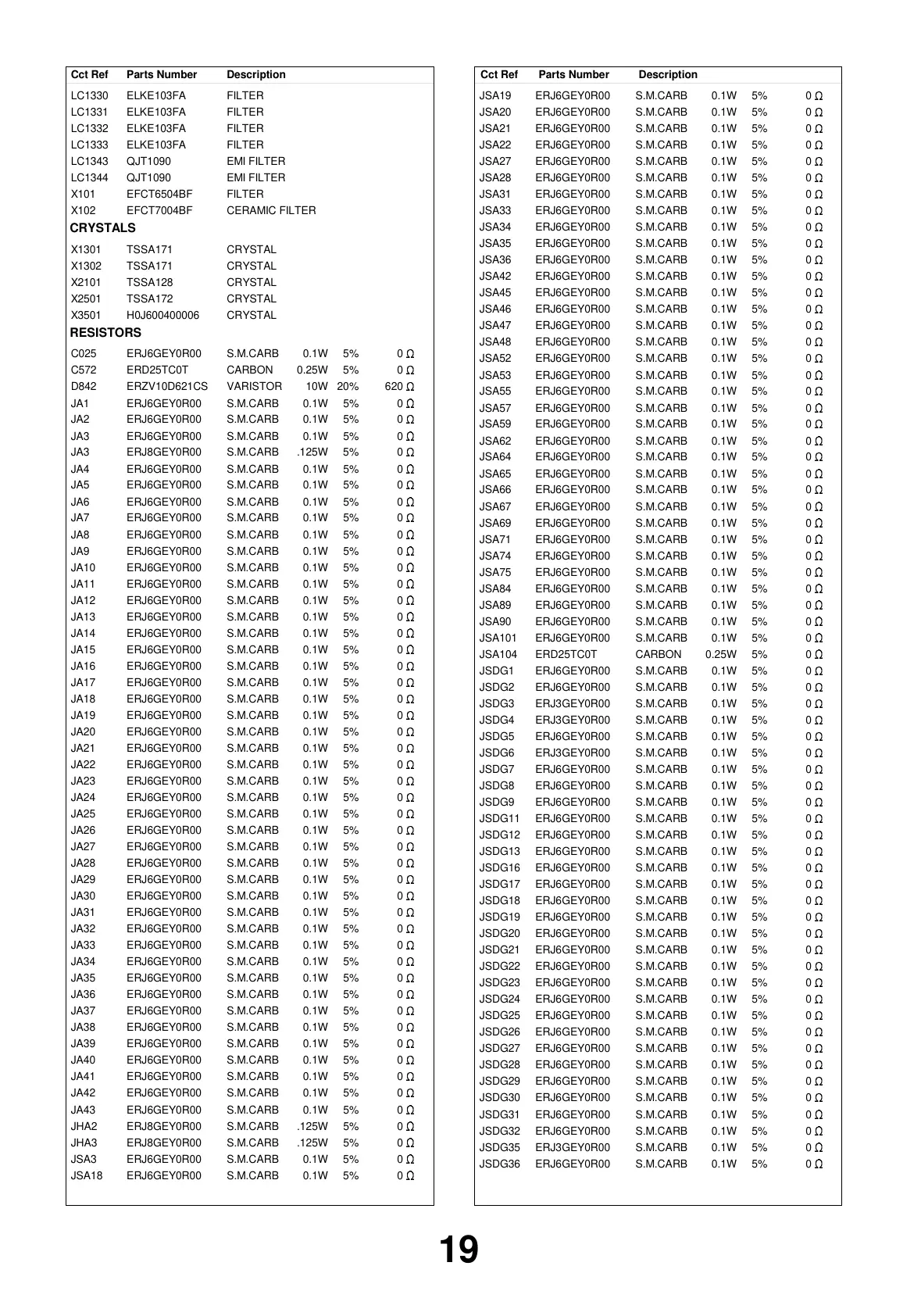 DescriptionCct Ref Parts Number DescriptionCct Ref Parts Number