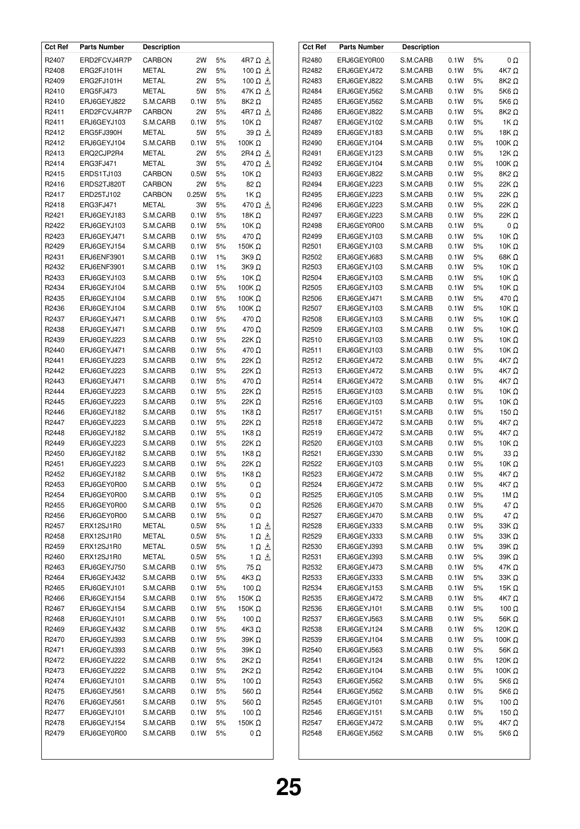 DescriptionCct Ref Parts Number DescriptionCct Ref Parts Number