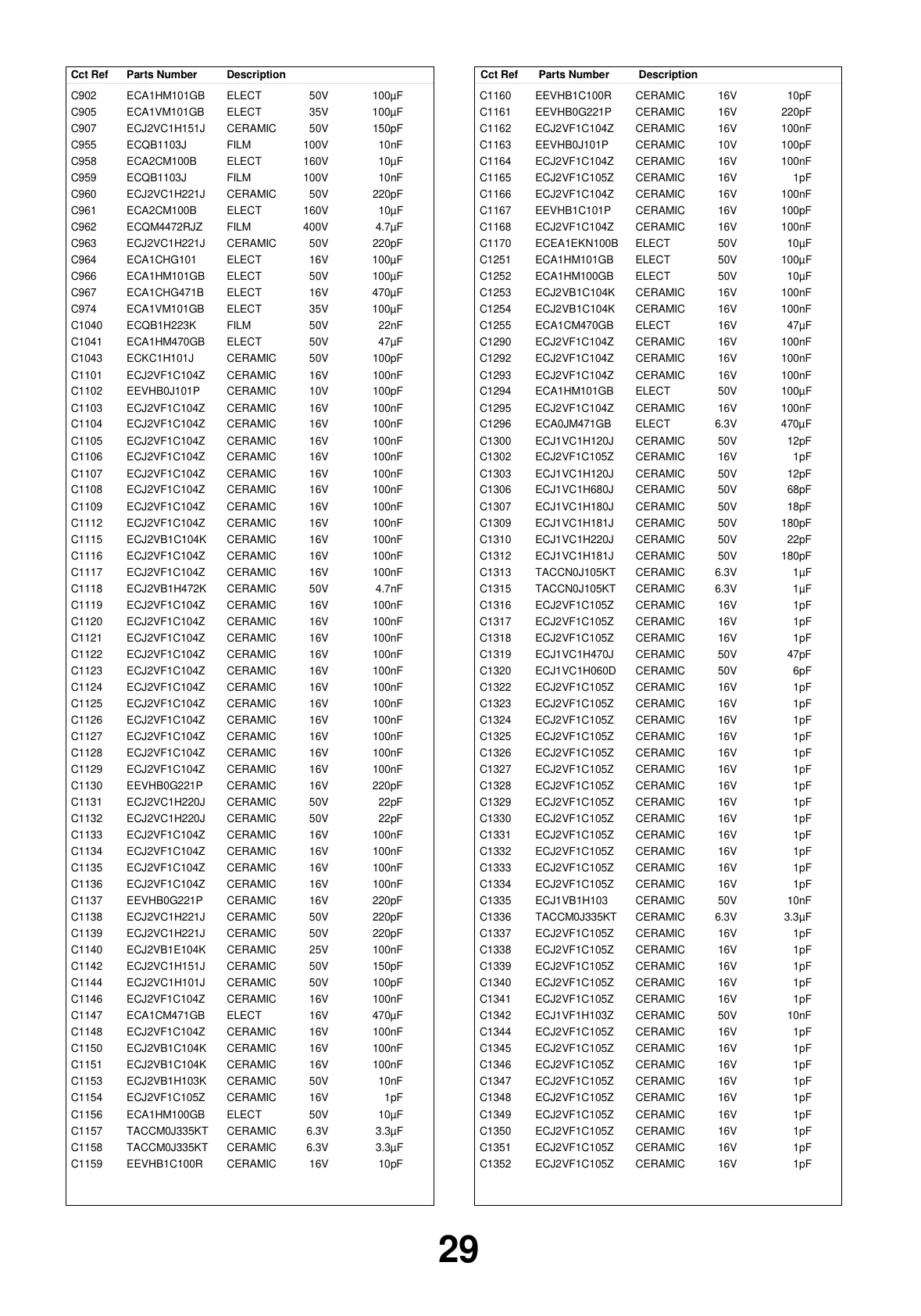 DescriptionCct Ref Parts Number DescriptionCct Ref Parts Number