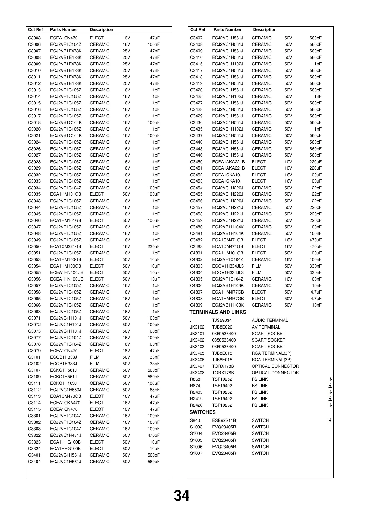 DescriptionCct Ref Parts Number DescriptionCct Ref Parts Number