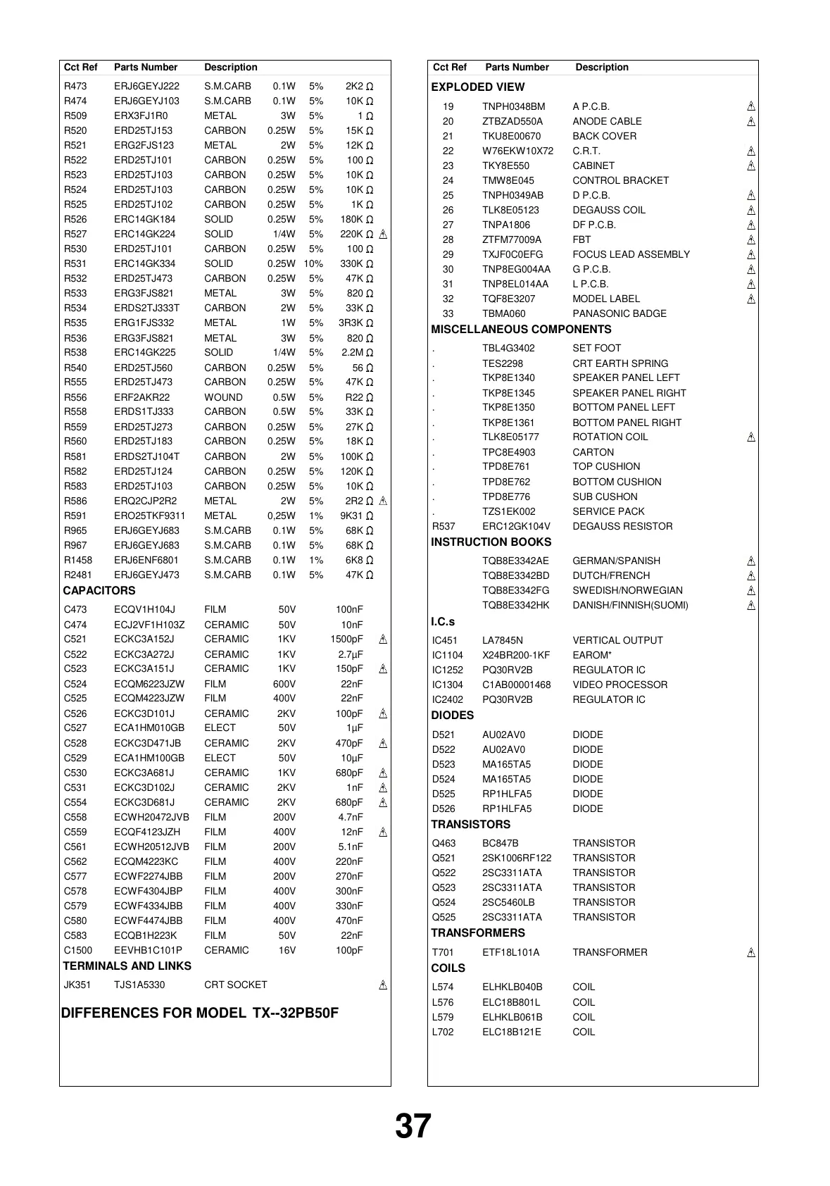 DIFFERENCES FOR MODEL TX--32PB50F