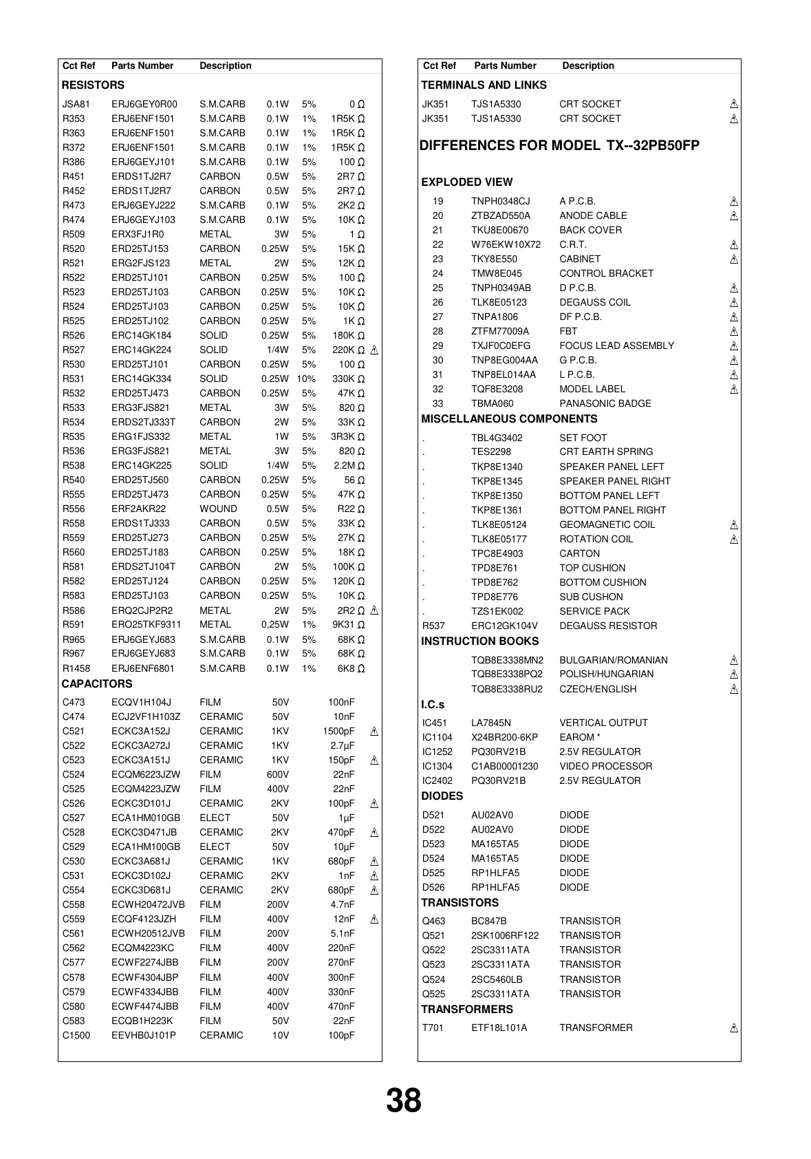 DIFFERENCES FOR MODEL TX--32PB50FP
