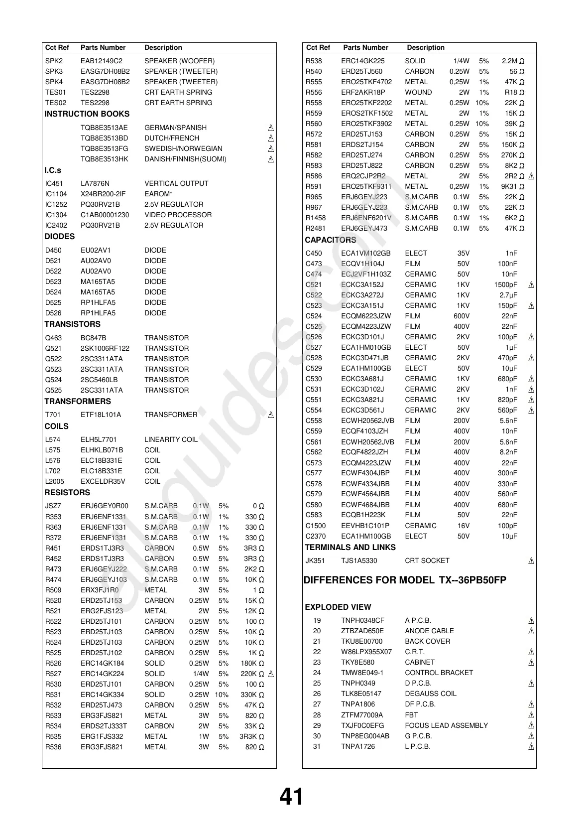 DIFFERENCES FOR MODEL TX--36PB50FP