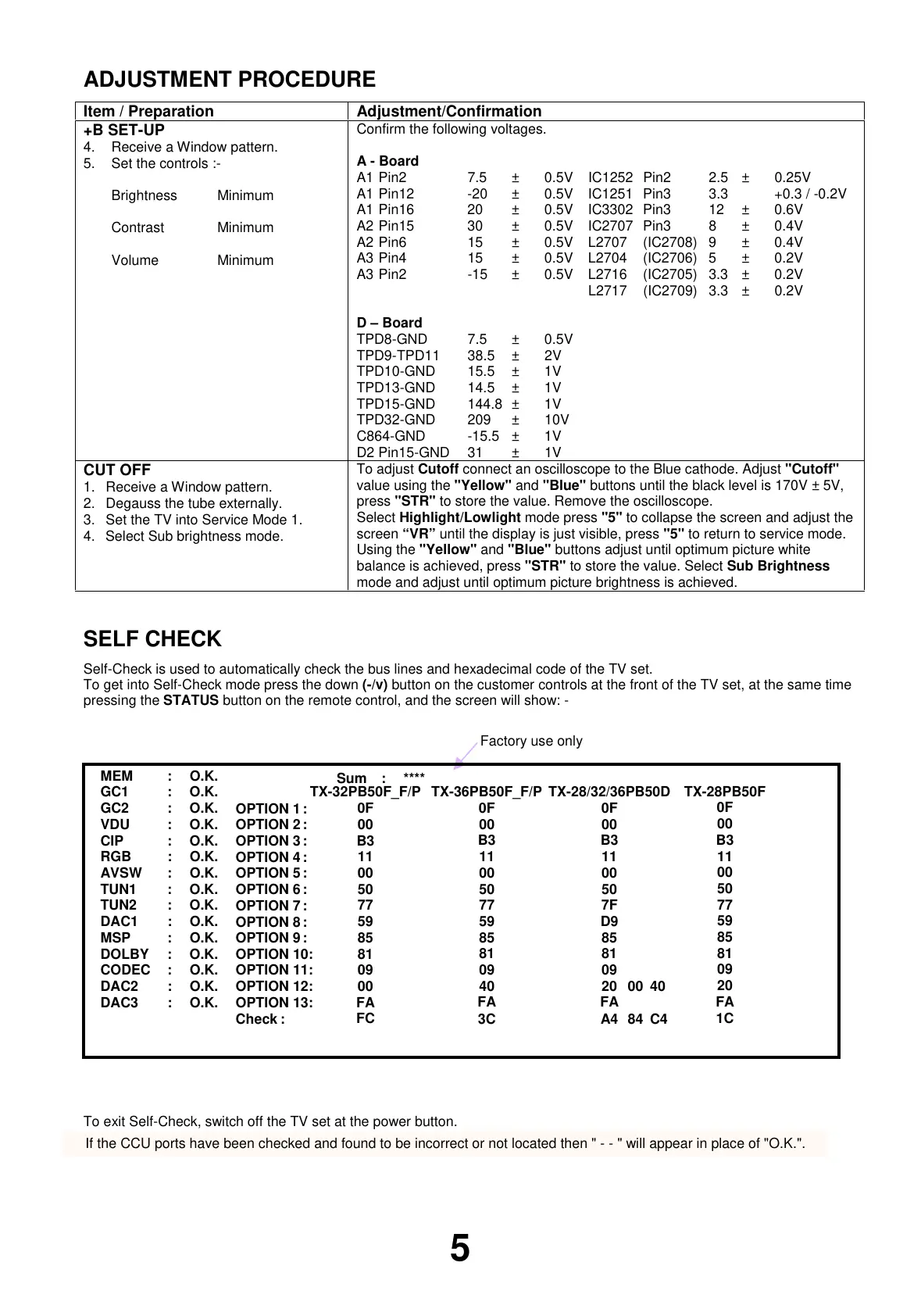 Self-Check is used to automatically check the bus lines and hexadecimal code of the TV set.