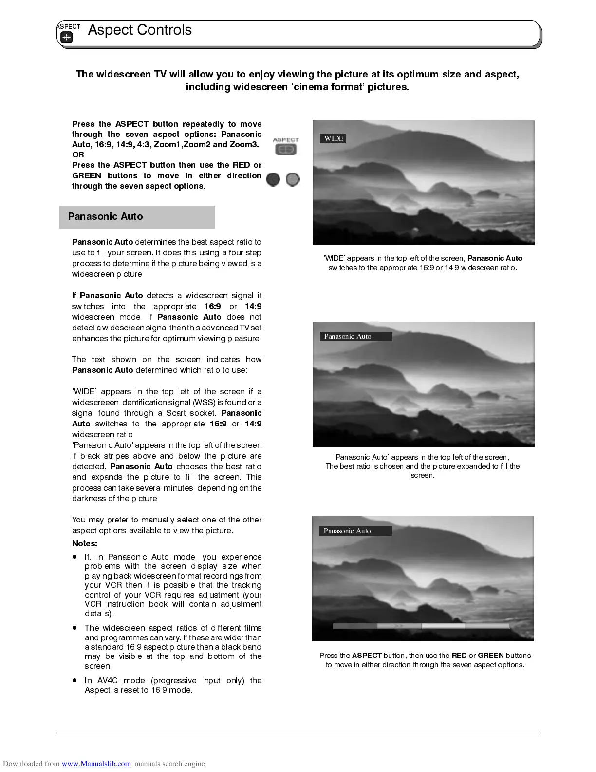 switches to the appropriate 16:9 or 14:9 widescreen ratio.