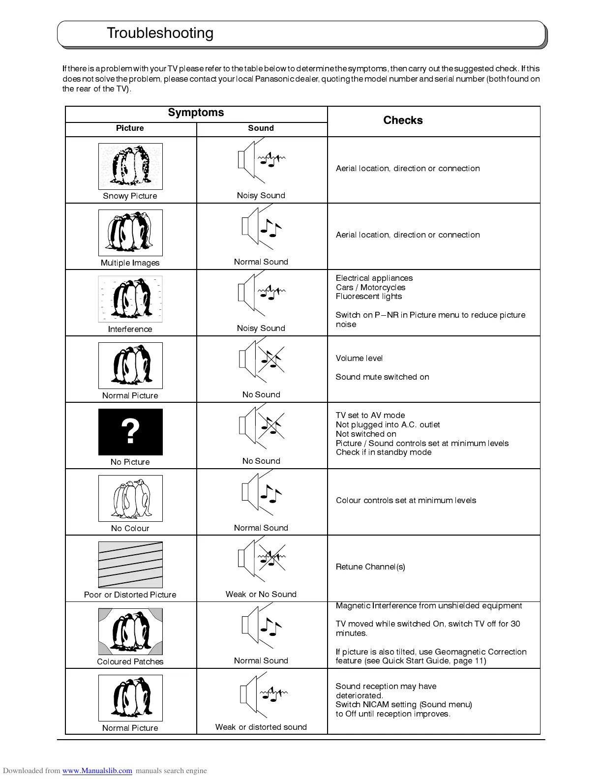 Ifthereis aproblemwithyour TVpleaserefer tothetablebelow todeterminethe symptoms,thencarry outthesuggestedcheck. Ifthis