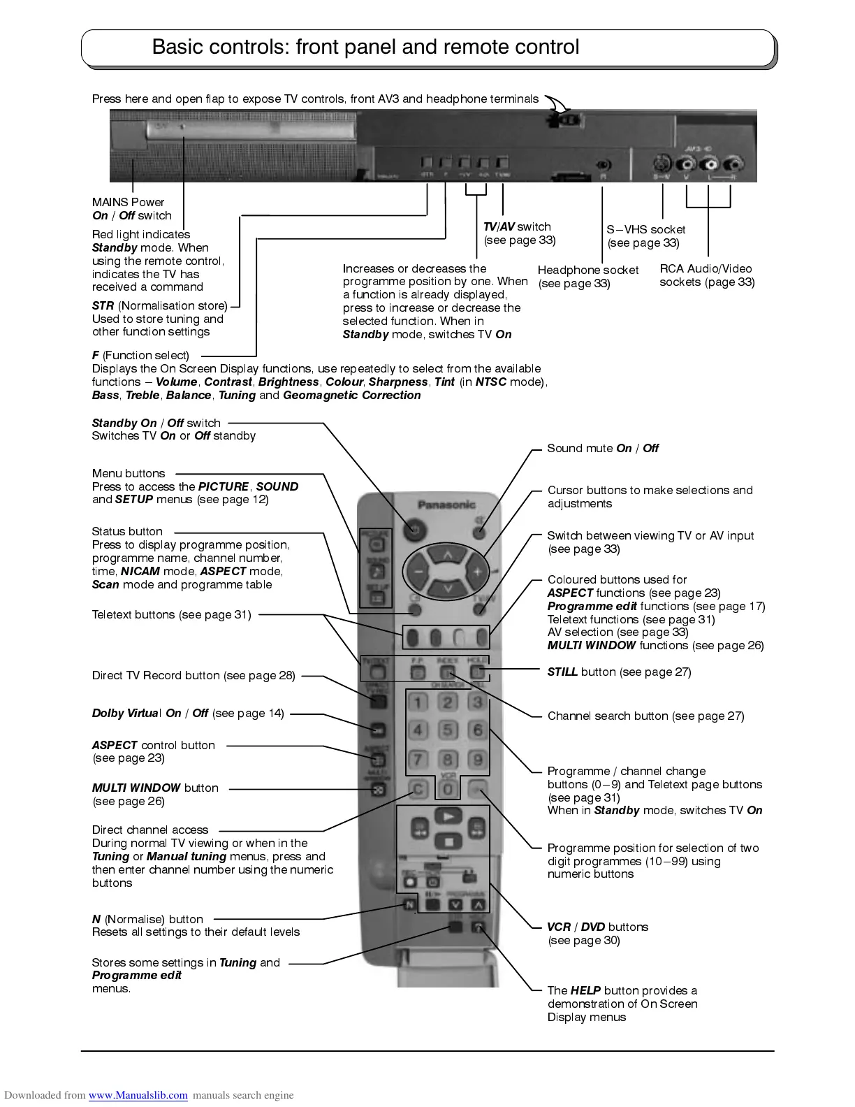Press here and open flap to expose TV controls, front AV3 and headphone terminals
