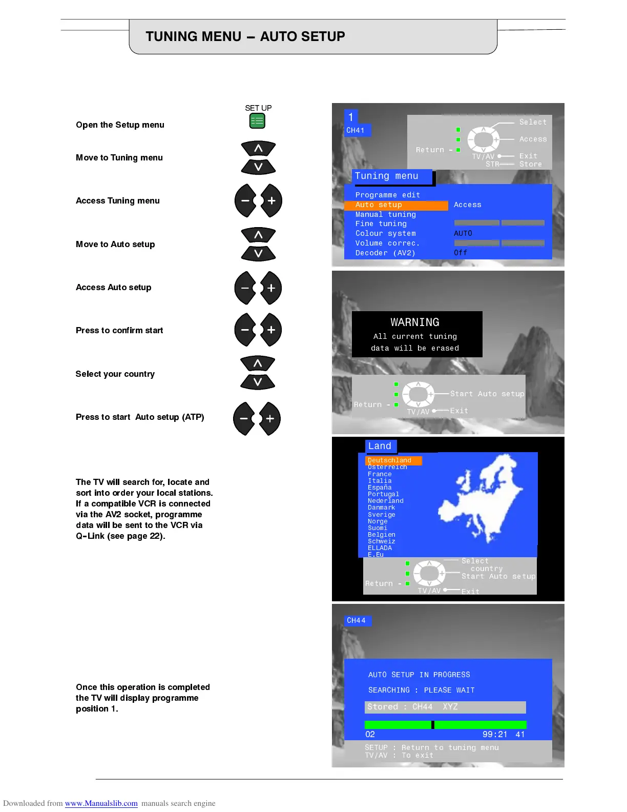 7KH $XWR VHWXS PHQX ZLOO DOORZ \RX WR DXWRPDWLFDOO\ UHWXQH WKH 79 WR \RXU ORFDO VWDWLRQV