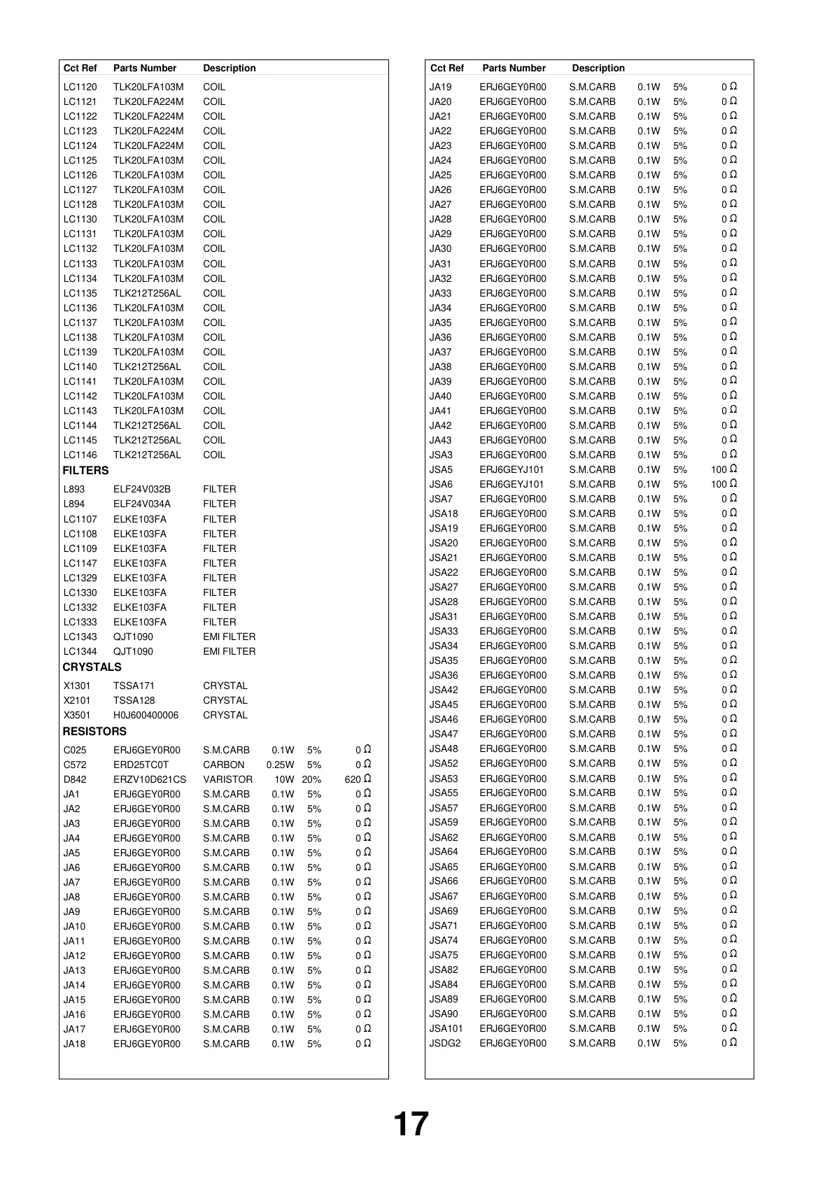 DescriptionCct Ref Parts Number DescriptionCct Ref Parts Number